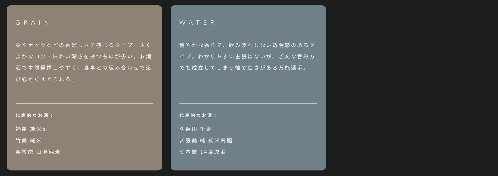 なお、診断結果は、FLOWER、 FRUIT、RICE、GRAIN、WATERの5タイプに分けられ、自分に合ったサケタイプを見つけることで、日本酒体験をアップデートしていただけます。