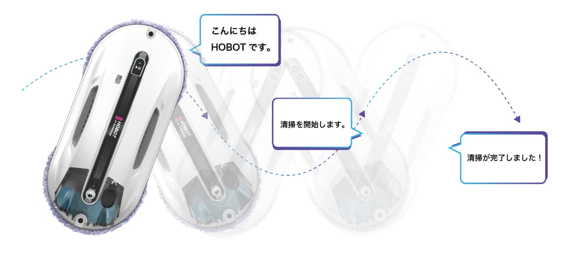 最上位モデル「HOBOT-2S」に搭載されていた音声ガイダンス機能を本製品に搭載。窓掃除の開始から終了まで日本語の音声ガイダンスでしっかりサポートします。また、万が一のトラブル時にも音声ガイダンスが説明しますので安心して対応が可能です。音声ガイダンスはお好みの声を録音することも可能です。