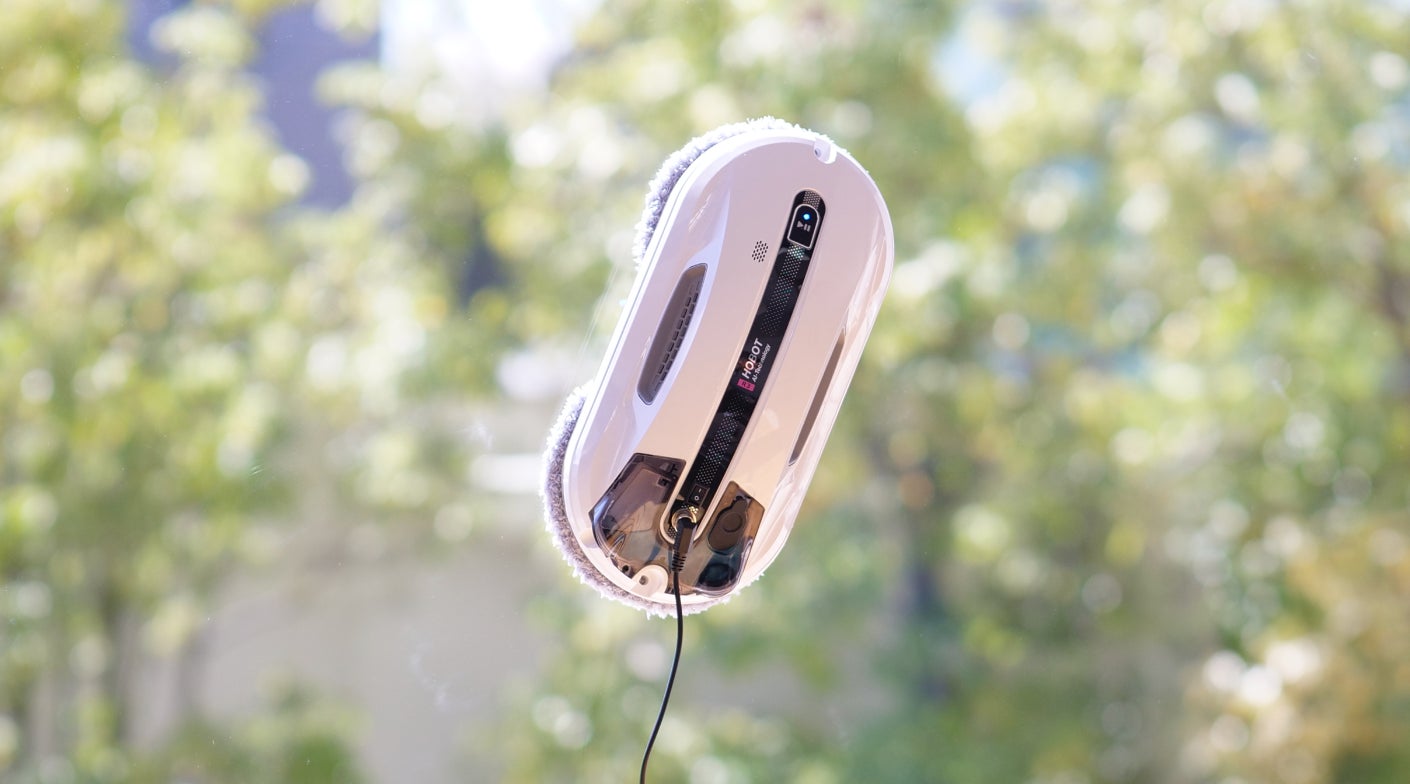 スイッチひとつの窓掃除ロボット「HOBOT-R3」は強力な吸引力で窓に吸い付き、窓ガラスの埃やチリをしっかり絡め取とります。