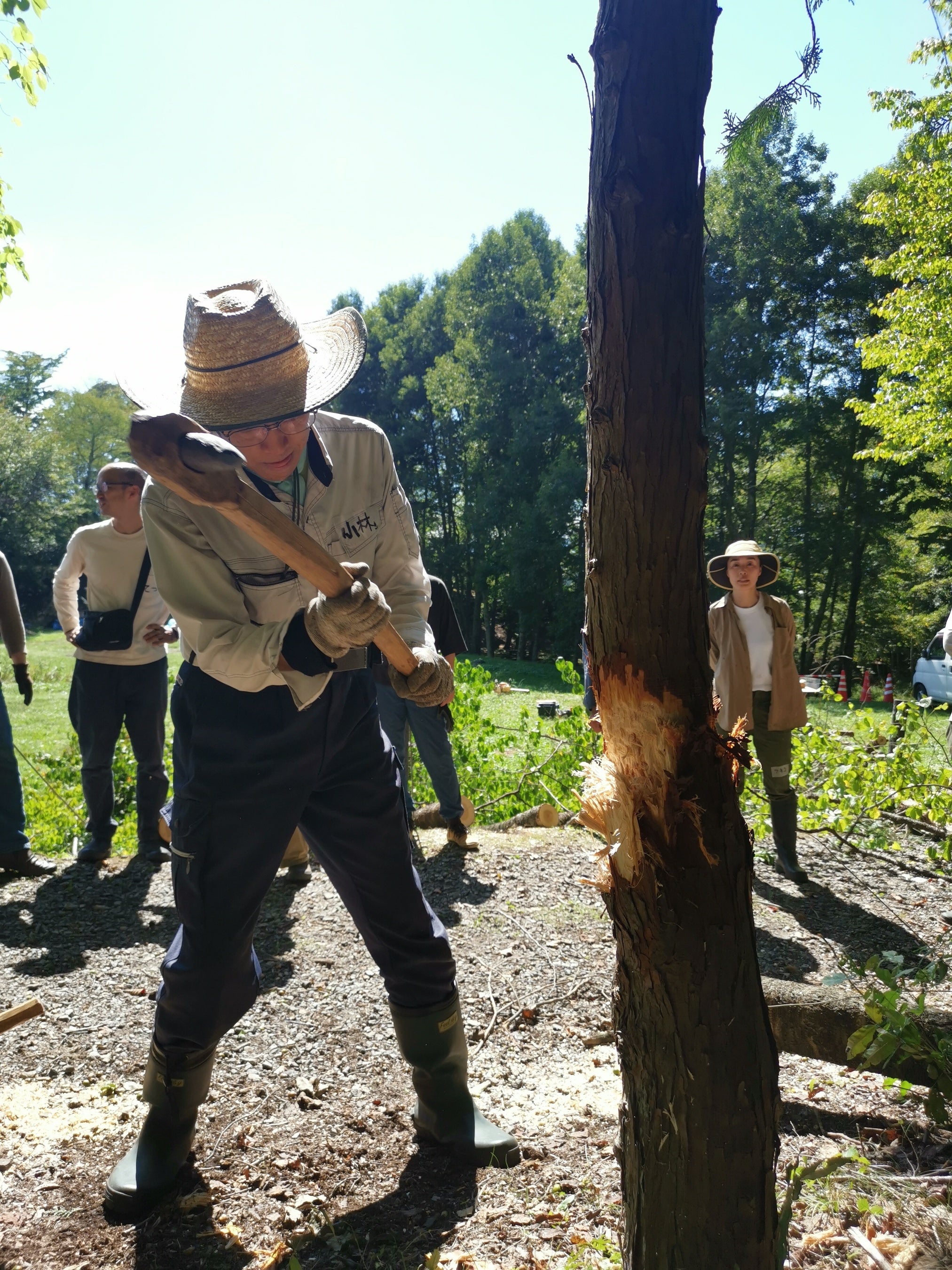 このプロジェクトの最大の魅力は、茅野市の“本物の縄文”にを感じながら、自分たちの手で住居をつくるという圧倒的なリアルさにあります。設計は茅野市出身の建築家・藤森照信氏。復元元となったのは、国宝「縄文のビーナス」が出土した棚畑遺跡の住居跡。材料は白樺の樹皮や藤の蔓など、自然の恵みそのもの。道具も、自作しながら用いました。完成した住居は、地域の素材と知恵が重なり合った“ちの旅”ならではの作品。住居作りを通して、参加者たちは縄文人の感覚にぐっと近づきました。