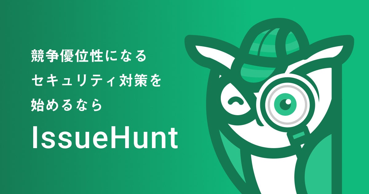 IssueHuntは、システムに潜む問題(Issue)を狩る(Hunt)ことで、お客様をサイバー攻撃の脅威から未然に守ることを目指しており、その思いがロゴにも込められています。