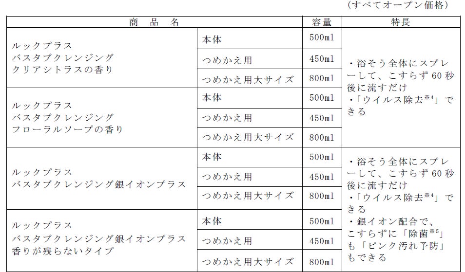 4.『ルックプラス バスタブクレンジング』のラインアップ