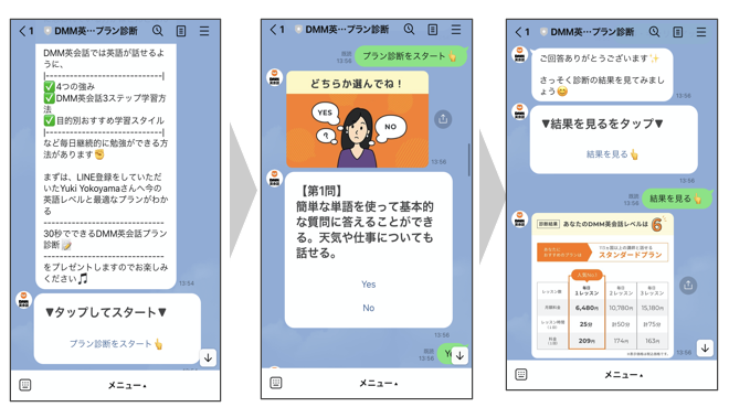例えば、DMM英会話では、英語力診断からおすすめプランを提示します。