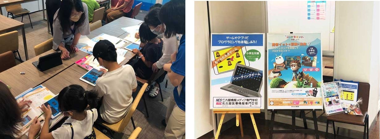 株式会社エスシーシー(本社:東京都中野区、代表取締役社長:松尾泰、以下「エスシーシー」)は、7月29日(金)~30日(土)の2日間、同じeDCグループである名古屋情報メディア専門学校(名古屋市熱田区、理事長:松尾泰、以下「NCS」)・名古屋医療情報専門学校(名古屋市熱田区、理事長:松尾泰、以下「NMIC」)と合同で、三井ショッピングパーク ららぽーと名古屋みなとアクルスにて、地域貢献活動の一環として小学生を対象とした無料のプログラミング体験イベントを開催しました。
