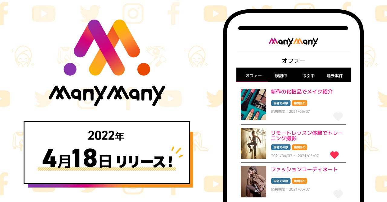 株式会社エヌリンクス(本社:東京都豊島区、代表取締役:栗林憲介)は、インフルエンサー向けお仕事アプリ「Many×Many(https://www.manymany.jp/)」の正式サービスを本日開始しました。
