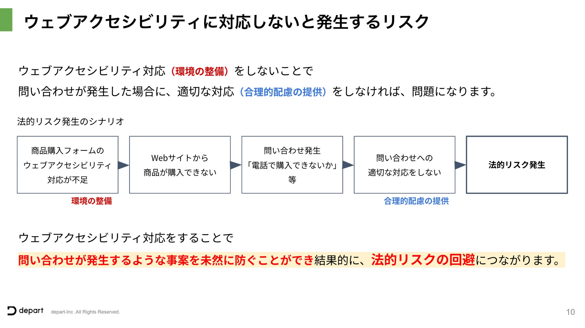 「ウェブアクセシビリティが義務化される」という誤った表現をよく見かけますが、この改正により義務化されるのは「合理的配慮の提供」であり、ウェブアクセシビリティが義務化されるわけではありません。