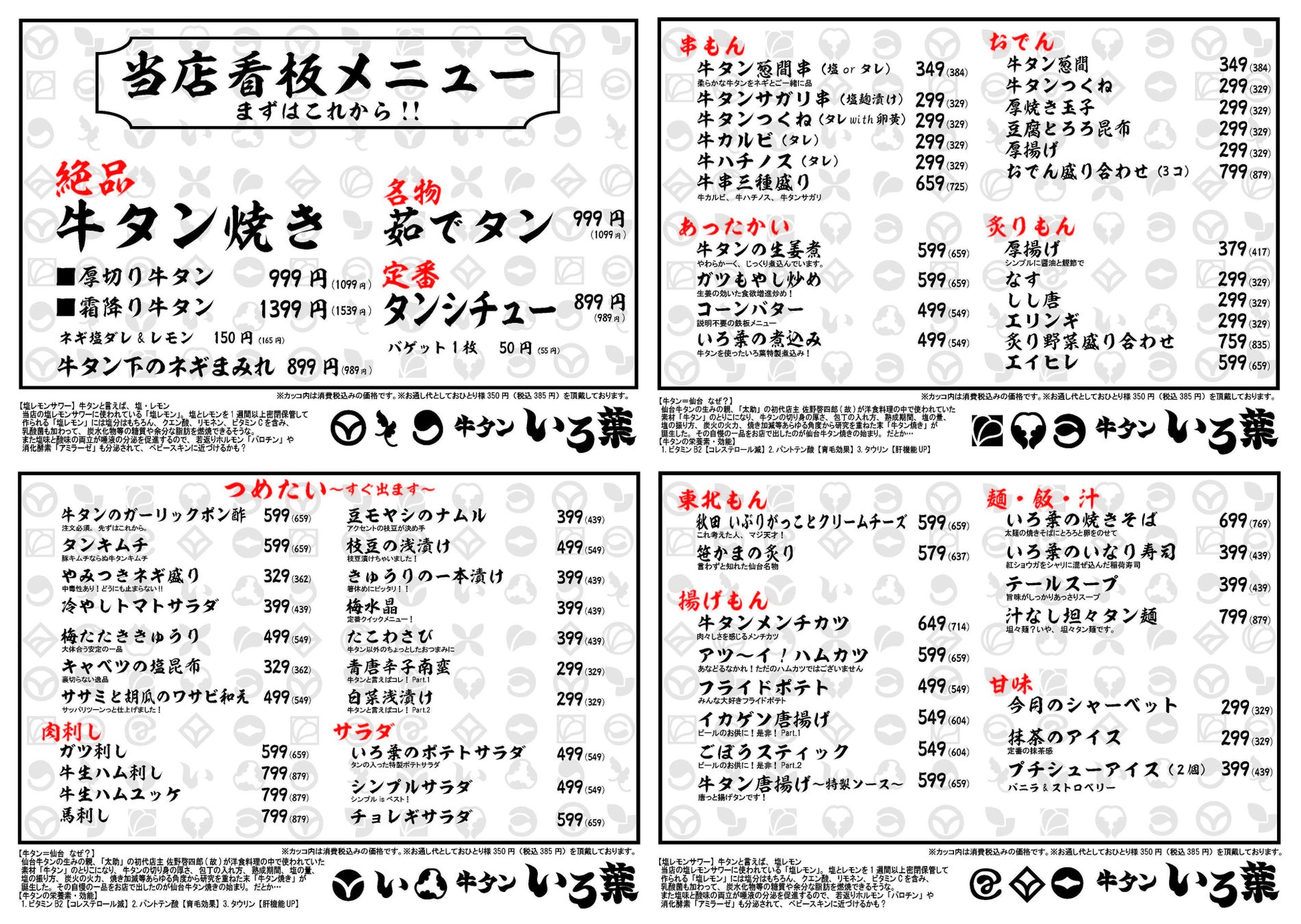 町田牛タンいろ葉は本日2月20日(火)にプレオープン、2月21日(水)にグランドオープンを迎えます。牛タンはもちろんのこと他にも沢山のメニューを豊富にご用意しております。