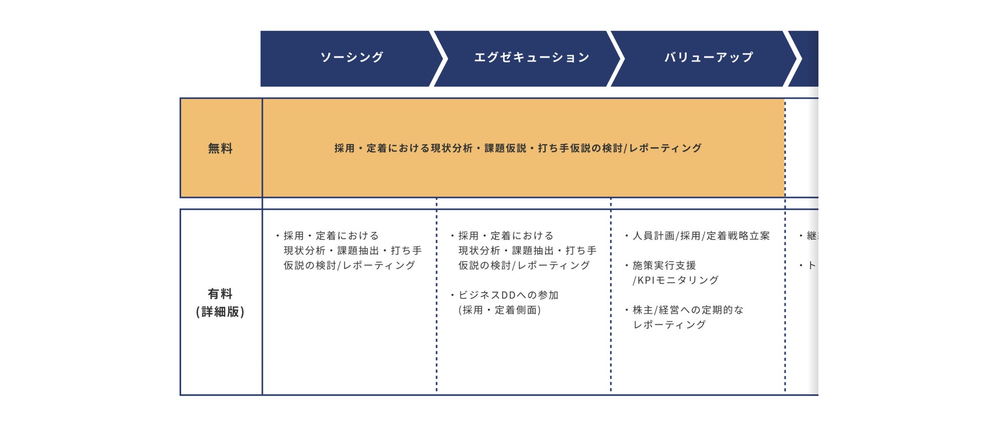 投資先企業の人材戦略は、企業価値向上の重要な要素です。しかし、多くの投資先企業が採用活動において課題を抱え、適切な人材の確保が困難な状況にあります。このような課題に対し、投資先企業の「課題の可視化」「採用における伸び代」「採用領域における業界での立ち位置」を無料で診断し、企業価値向上に貢献します。