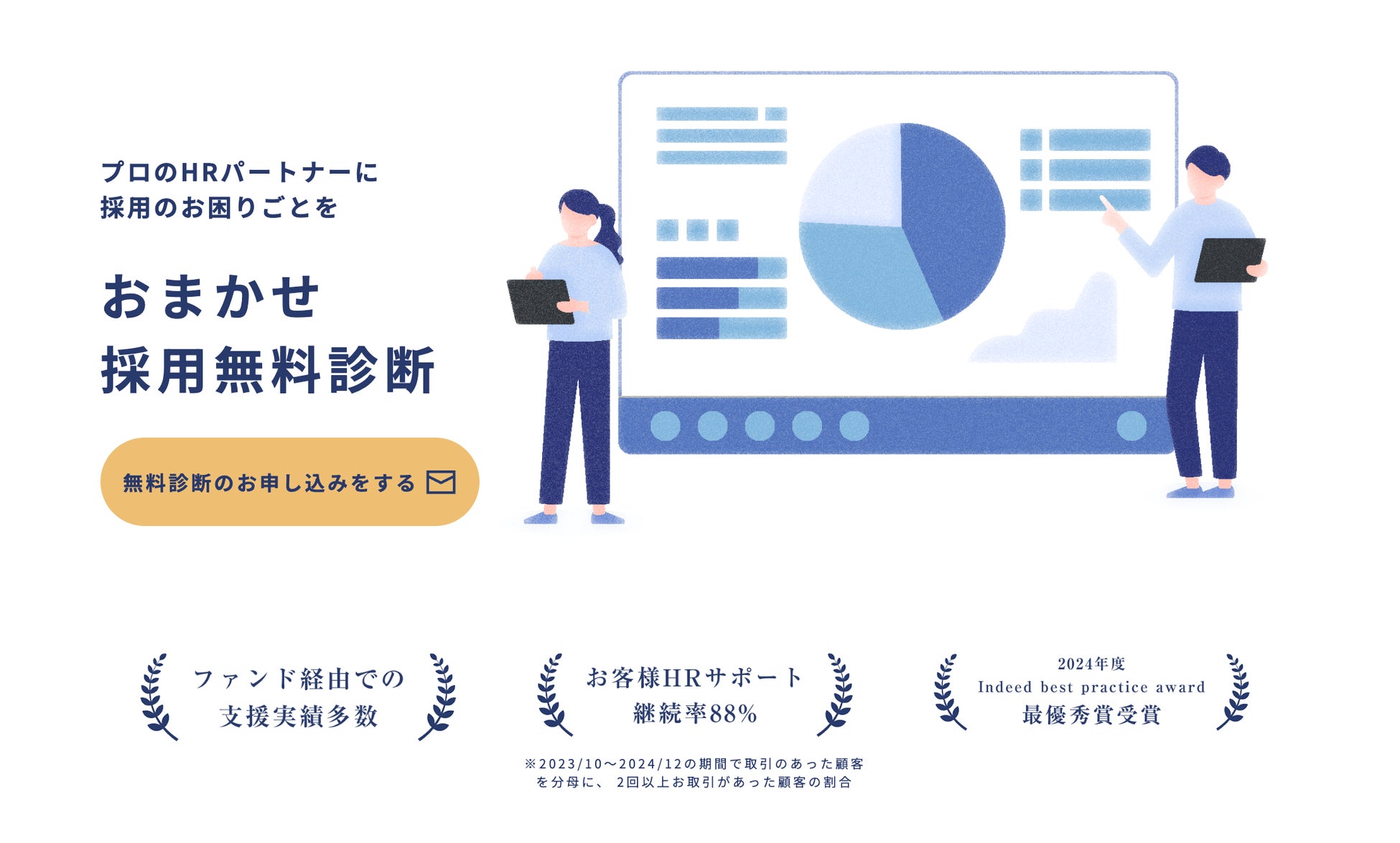株式会社リライアス(本社:東京都港区、代表取締役:江本 誠一)は、PEファンド様を対象に、投資先企業の採用活動を無料で診断する「おまかせ採用無料診断」サービスの提供を3月10日より開始いたします。
