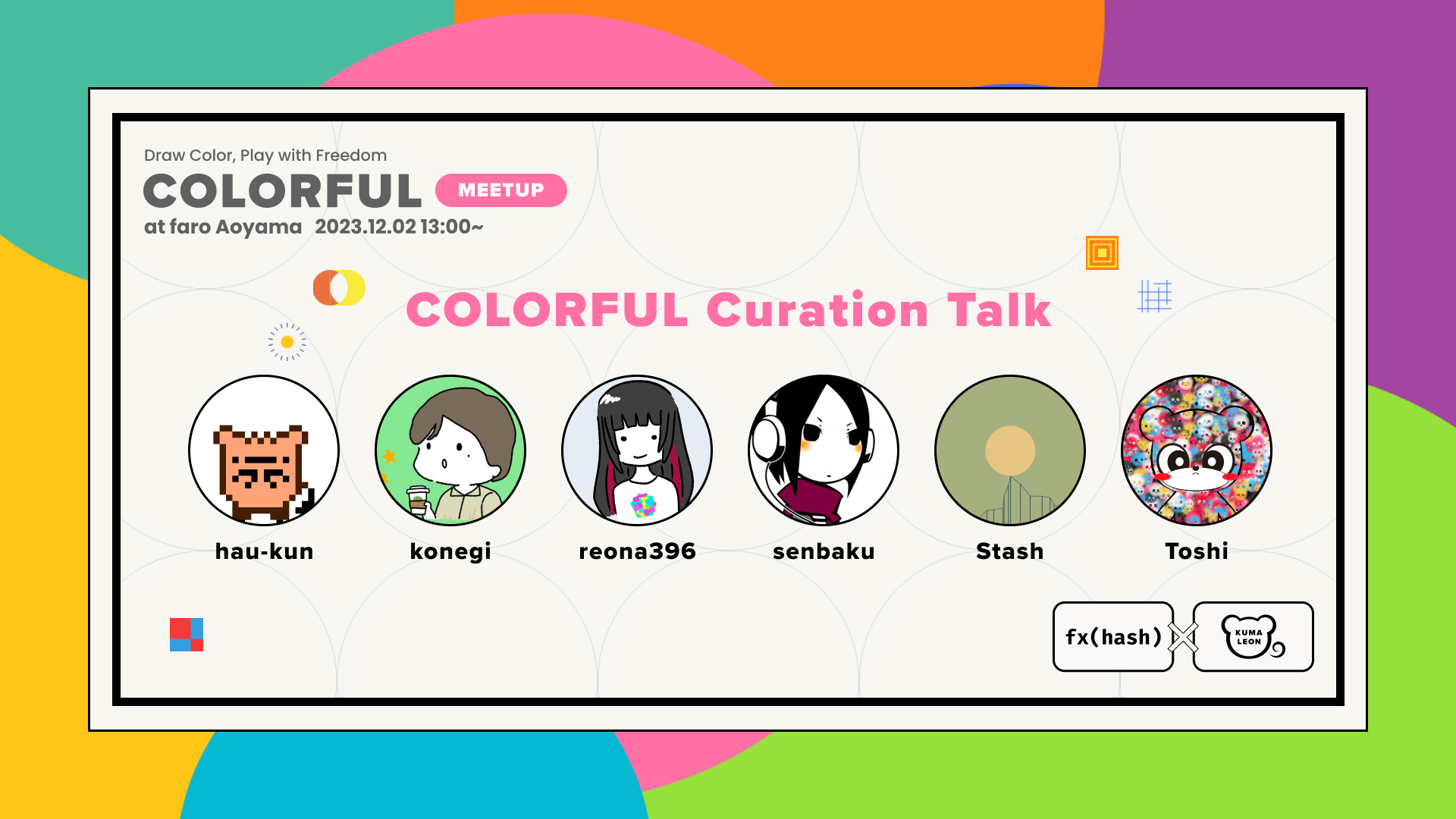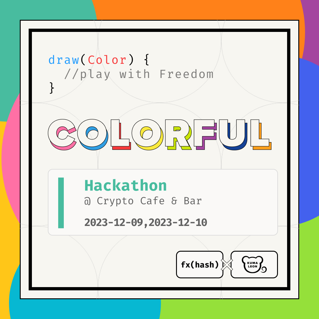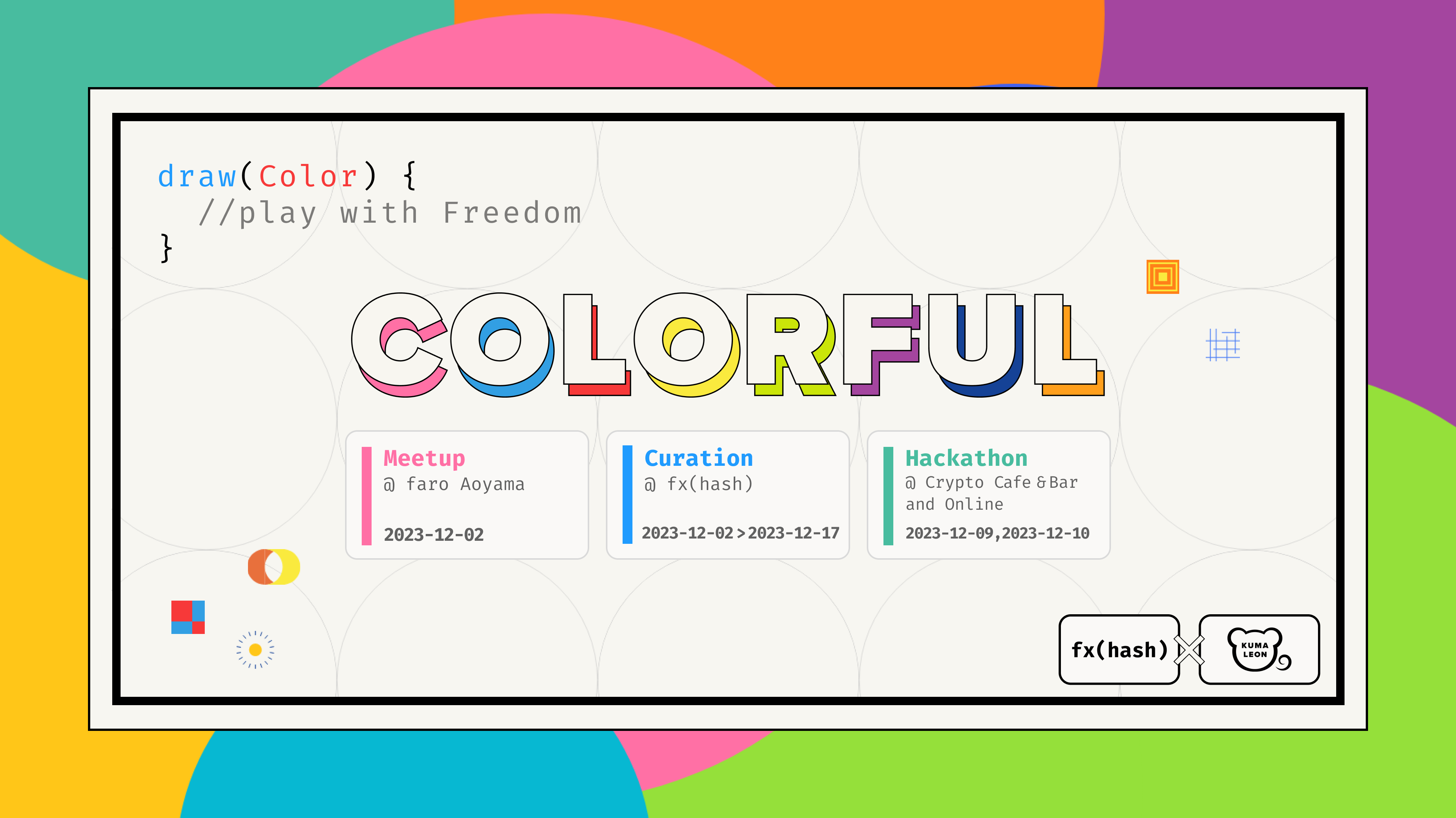 世界的なジェネラティブアートプラットフォーム「fxhash」と日本発のNFTコレクション「KUMALEON」が提携。コードを通じた表現を楽しむイベント「COLORFUL」を開催。
