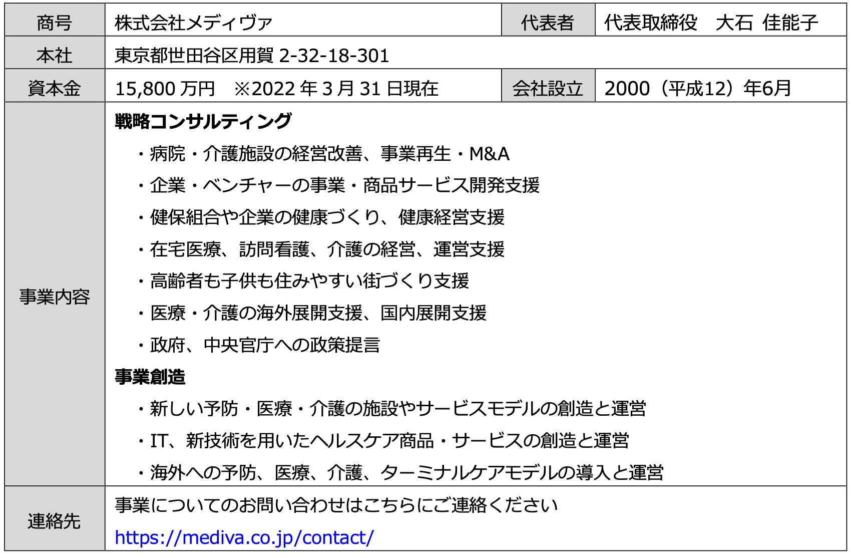 ■株式会社メディヴァの概要は、Web サイトをご覧ください。(https://mediva.co.jp/)