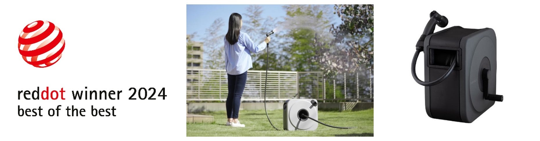 また、用途に応じてスムーズに切替えができる4種の水形、巻き取り・引き出しがスムーズに行えるホースガイド、静かな巻き取りを叶えるリール等、ユーザーの使いやすさを追求した機能を多数搭載し、高い使用感を実現しました。水量調整が可能なノズルは、植物を優しくケアするガーデニングから、汚れを強力に落とす洗車まで、幅広い用途に使用できます。