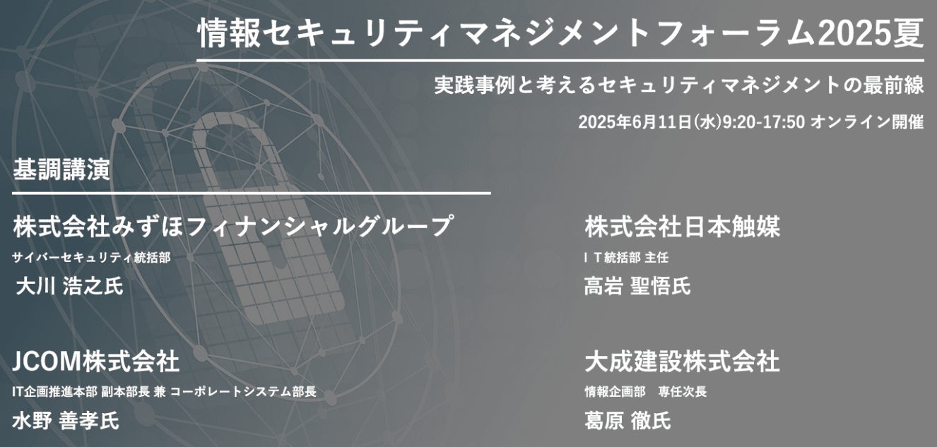 株式会社リバイバル・マネジメント・フォーラム事務局(本社:東京都中央区 代表取締役:高久亮)は、2025年6月11日(水)、「情報セキュリティマネジメントフォーラム2025夏」を開催しました。