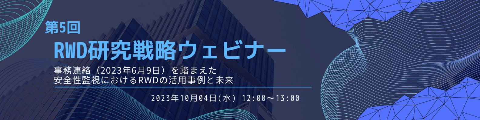 【2023/10/04 開催】第5回 RWD研究戦略ウェビナー「事務連絡(2023年6月9日)を踏まえた安全性監視におけるRWDの活用事例と未来」