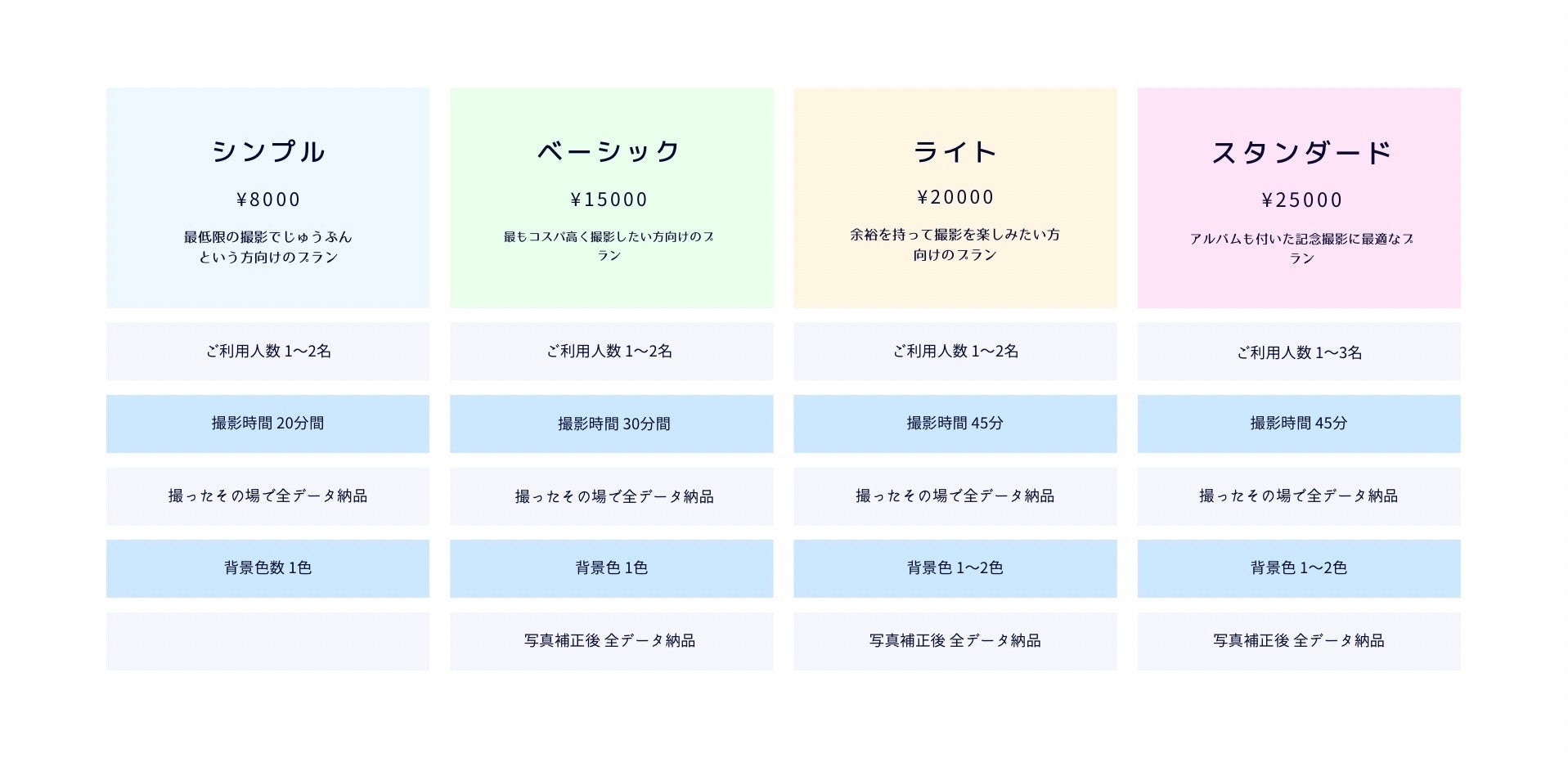 ・一般的なフォトスタジオ同様のクオリティながらも半額以下の料金設定