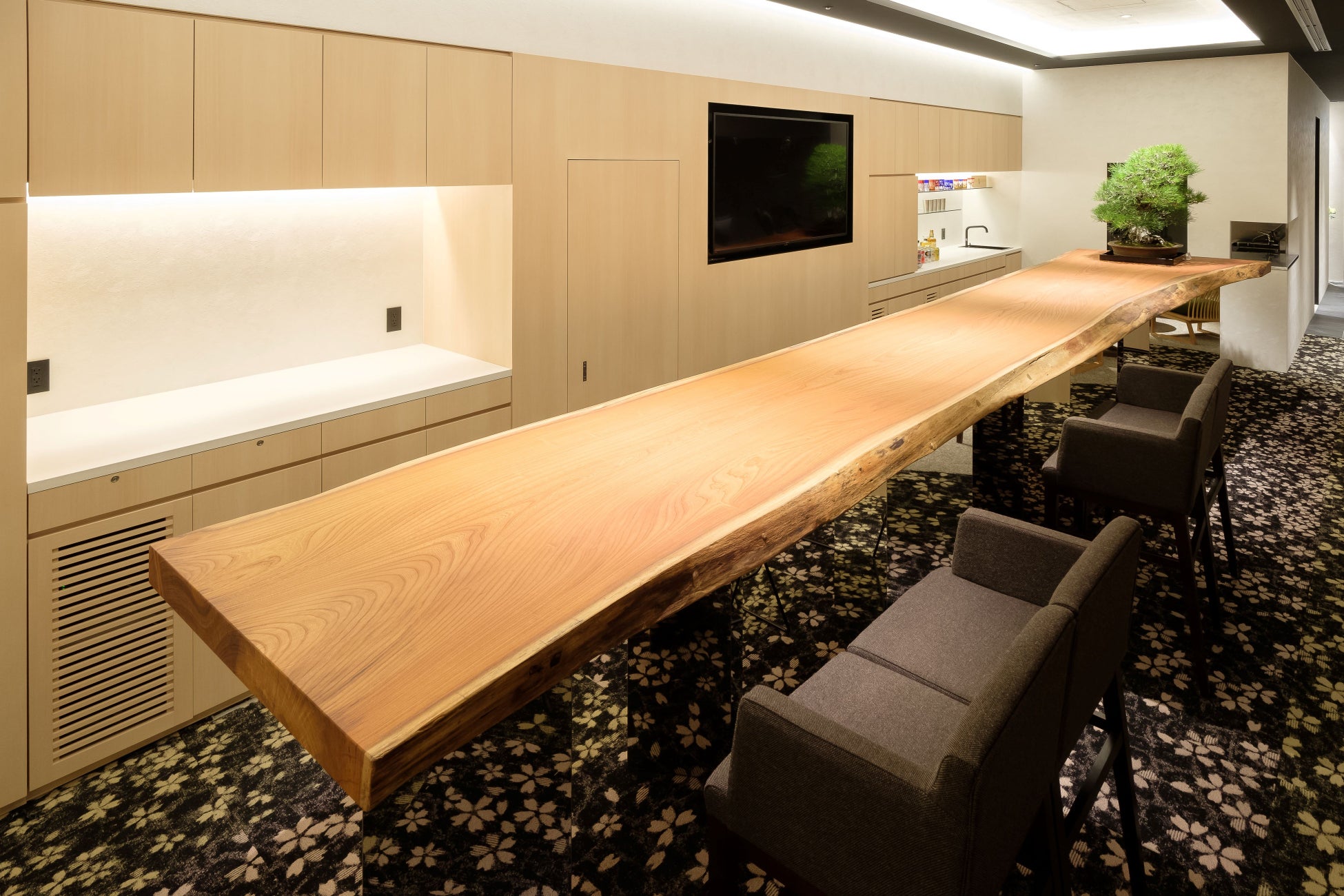 「⽇本の⽂化は、おもてなしから始まる」をテーマに、ブランド名を「JapanPremiumLounge」とし、ケヤキの7mを超える1枚板のカウンターや、香川の庵治石による石垣をはじめとし、飛騨高山の国産木製ブランドの家具や提供飲食物に至るまで、日本各地のプレミアムなものを集め、日本の美意識が息づく心地よく美しい空間で、乗車前の優雅なひとときを過ごす場として、またインバウンド向け観光案内サービスを提供する場として、12月15日(金)15:00にオープン致します。