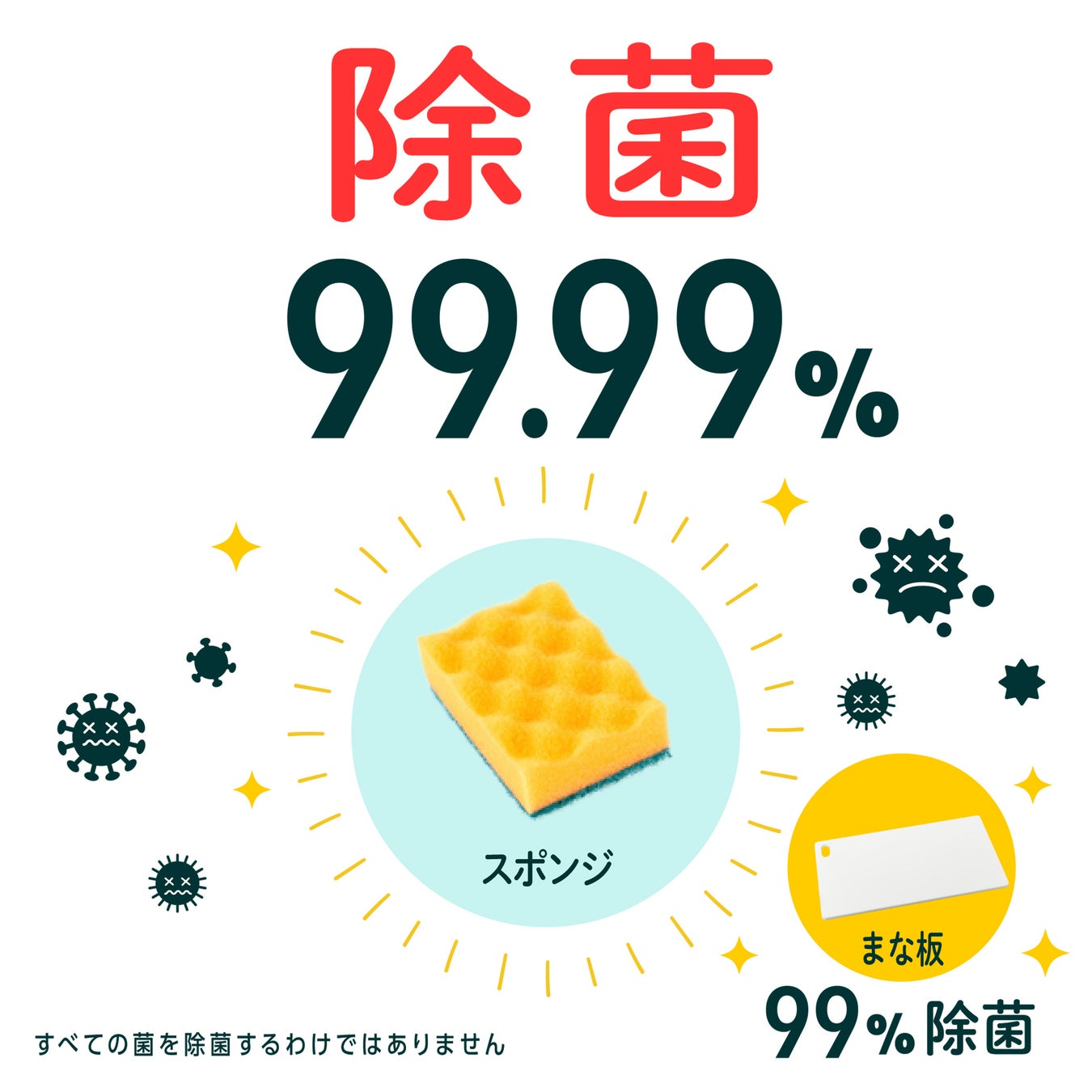 スポンジ除菌99.99%、まな板99%除菌だから、手軽にしっかり清潔を保てます。