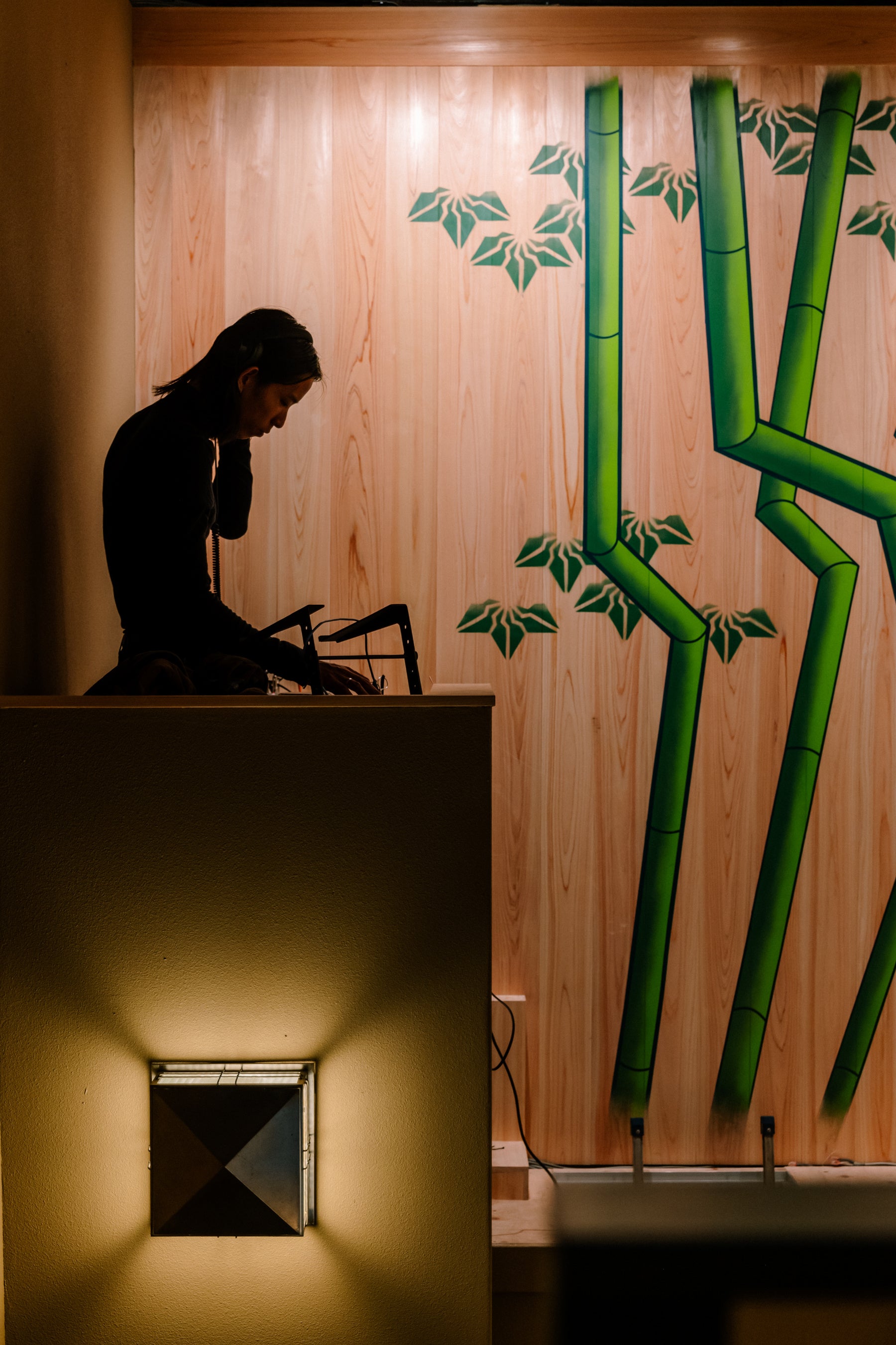 内装①/新進気鋭のクリエイター、BAKIBAKI氏による店内アート「松と竹」