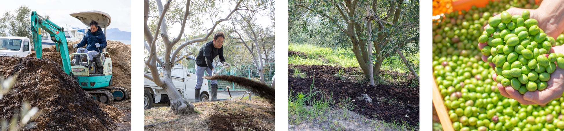 ・自社農園で出る剪定枝や、自社採油工場で発生する残渣を発酵させた有機堆肥「オリーブ堆肥 toyo-oliveの恵」を使うことで、資源を循環させながら土とオリーブを育てる有機栽培を可能にしました。