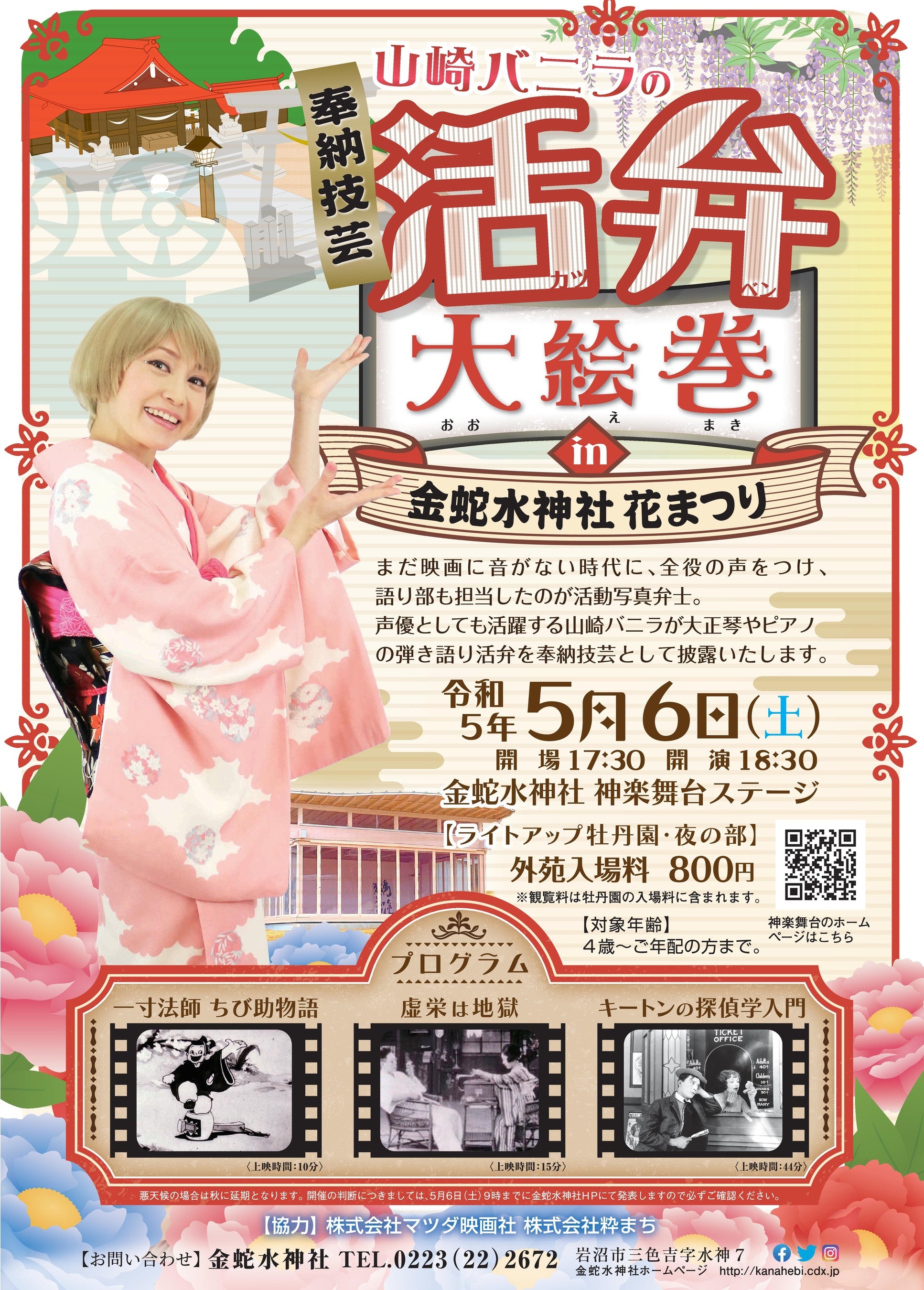 宮城県岩沼市三色吉に鎮座しております金蛇水神社(かなへびすいじんじゃ)の花まつりが5月3日から15日、例大祭が15日から21日まで開催されます。