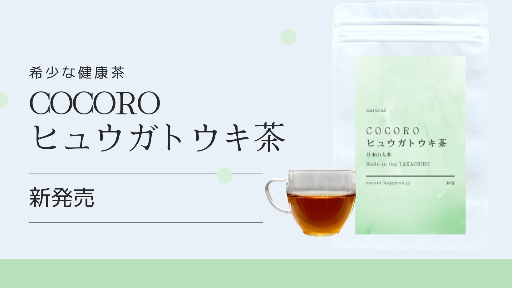 COCOROが提供する「ヒュウガトウキ茶」は、宮崎県高千穂峡の水源で栽培された希少な茶葉で、その地域がパワースポットとしても有名です。健康や美容に良いとされ、口コミで広がり貴重なお茶となっています。