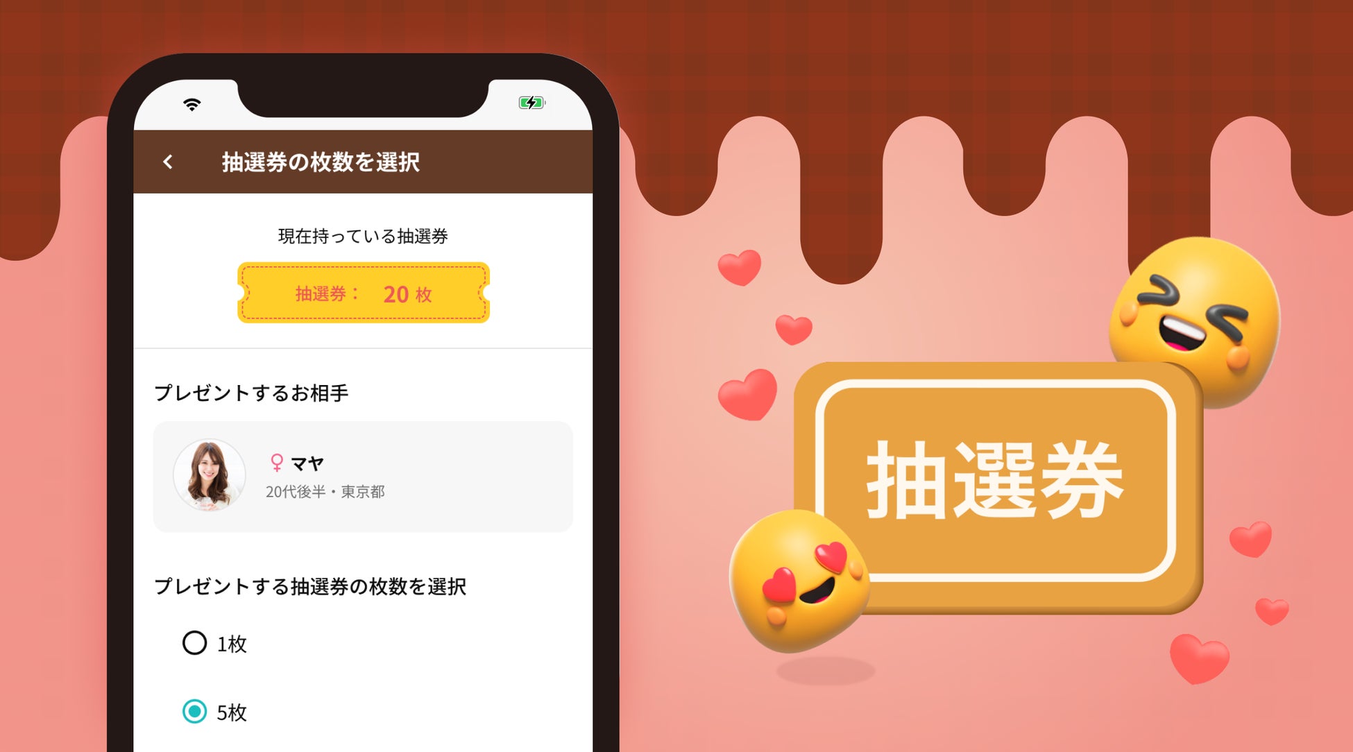 仲良くなりたいお相手に抽選券をプレゼントできるので、交流を深めるチャンス!
