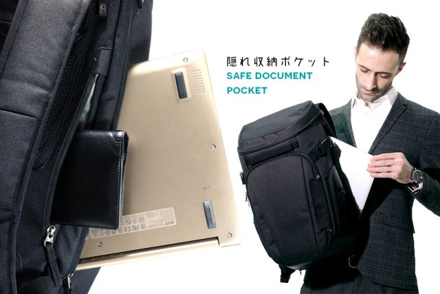 ノートPCの収納はもちろん可能です。ラップトップメザニンでノートPCやタブレットを優しく保護しながら収納します。さらに背中が側にはシークレットポケットも付いていますので、財布やパスポート等、貴重品を収納できます。
