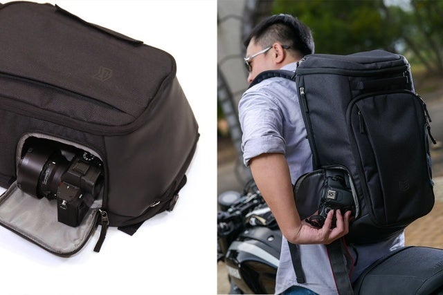正面左側面にはクイックアクセスが付いています。ファスナーを開ければ、バックパック内部の荷物をすぐに取り出せます。カメラの収納場所にもピッタリです。(間仕切りで気室を区切っておけば、荷物を出してもバックパック内部の荷崩れを抑えることができます。)