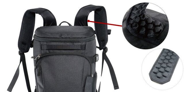 Xero Backpack2.0のショルダーハーネス(肩パッド部分)には、独自開発のマルチチャネル空気圧分散システムが組み込まれています。