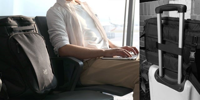 お持ちのキャリーバックにXeroBackpack2.0を搭載できます。出張や旅行で移動中に使える便利な機能です。