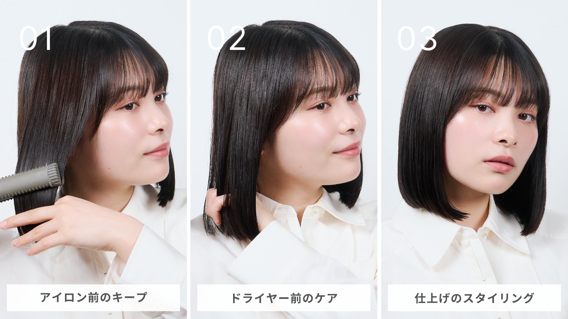 アイロン前のキープ・ドライヤー前のケア・仕上げのスタイリングとして使える3WAY