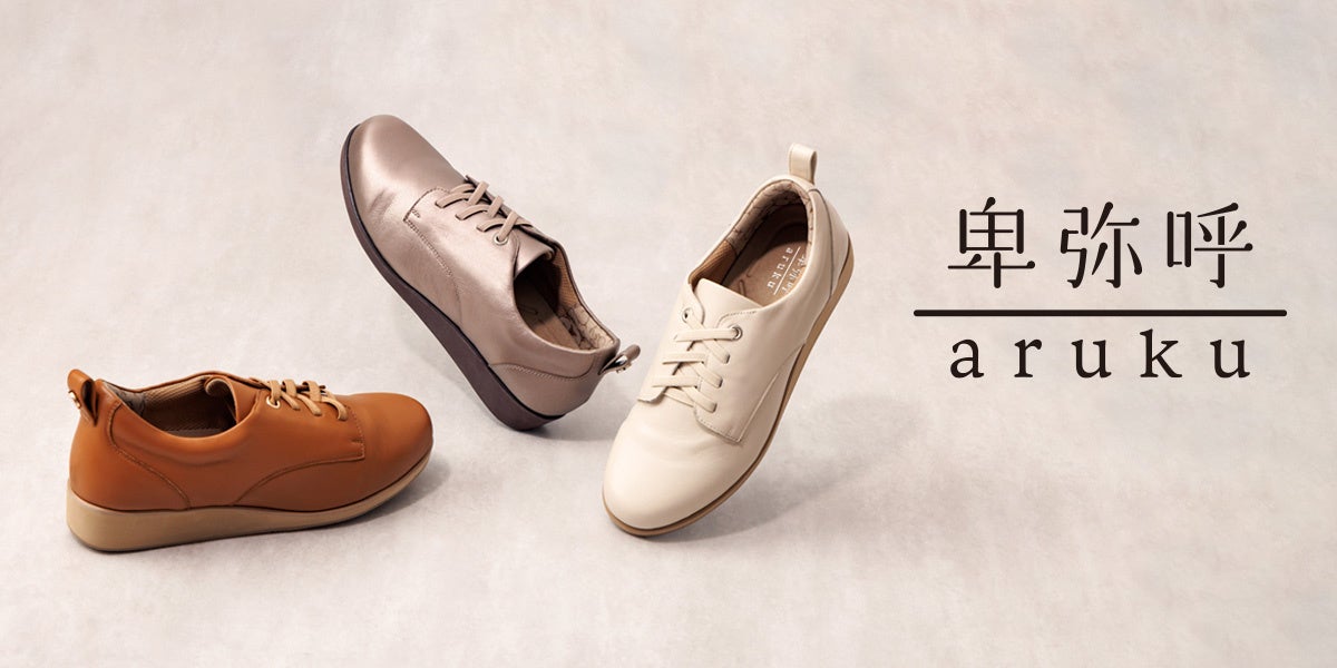 エイジレスにおしゃれを楽しむ大人の女性に向け、開発に1年以上かけたarukuシリーズは、こだわりの履き心地とソフトな撥水レザーを使用したプレミアムシューズです。日常を快適にし、「歩く」楽しさを提供したいとの思いから、上質で機能性の高いシューズをご提案します。