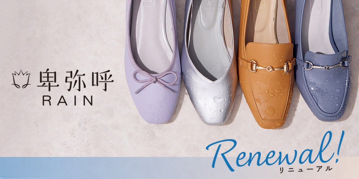 卑弥呼RAINシリーズが2024年夏よりリニューアルしました。ソフトな防水素材、オリジナル防滑ソール、200時間耐水、柔らかクッション搭載で機能性・履き心地ともにこだわった晴雨兼用シューズをご提案します。