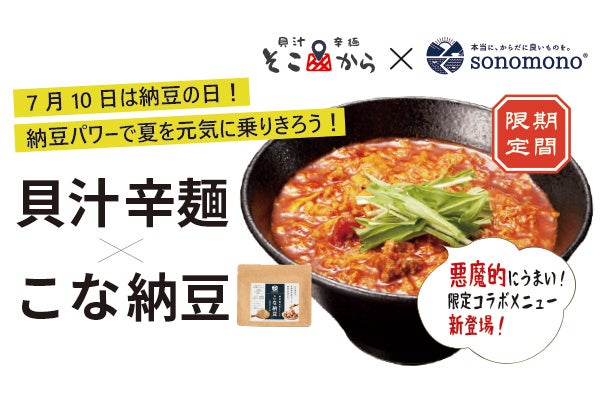 【期間限定★福岡グルメ】7月10日は納豆の日!旨辛麺人気店「貝汁辛麺そこから」とsonomono「こな納豆」の初コラボ!スタミナ満点&激ウマメニューが新登場!