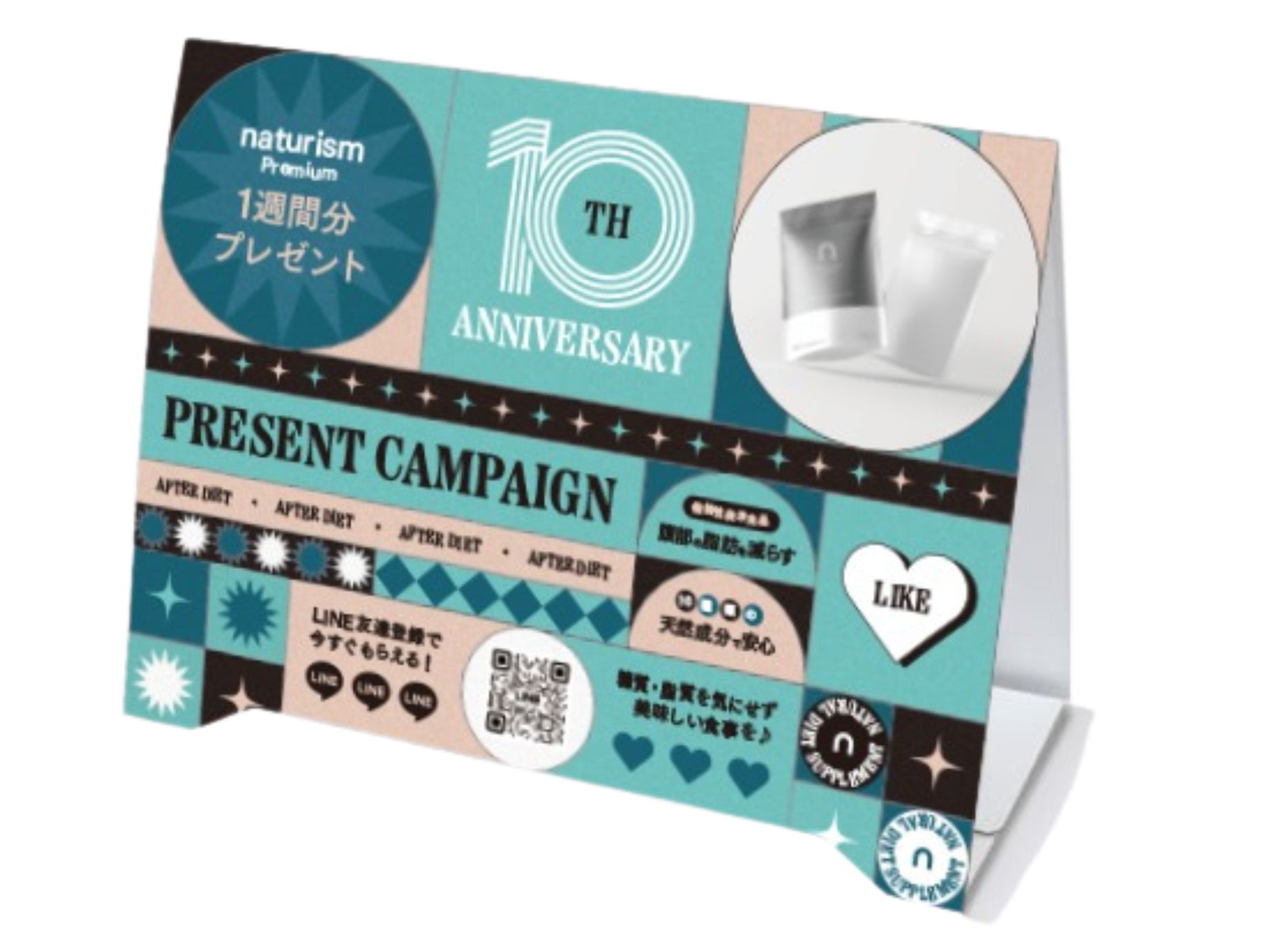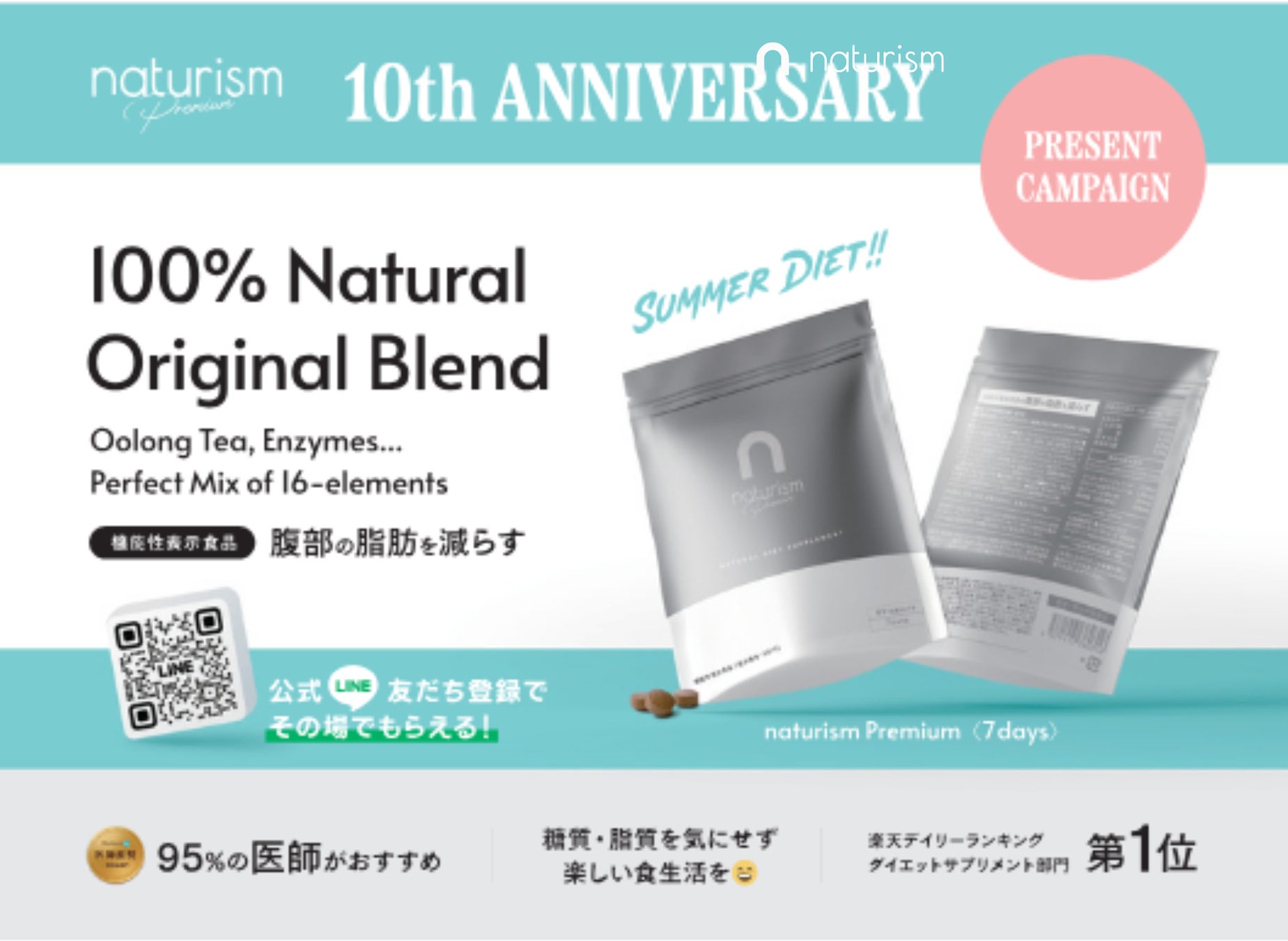 株式会社ケンコーエクスプレス(本社:東京都港区、代表取締役:加藤美佳)は、2024年7月11日(木)から自社開発のダイエットサポートサプリメント「ナチュリズム」ブランドの10周年を記念して「公式LINE友だち登録でその場でもらえるキャンペーン」を実施いたします。(※なくなり次第、キャンペーン終了)