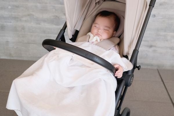 約90×100cmのサイズは、赤ちゃんの掛けものとしてはもちろん、大人がひざかけや肩掛けとして使うことで、オフィスや移動時の冷房対策にも便利です。軽くて持ち運びやすく、日常のさまざまなシーンで活用できます。