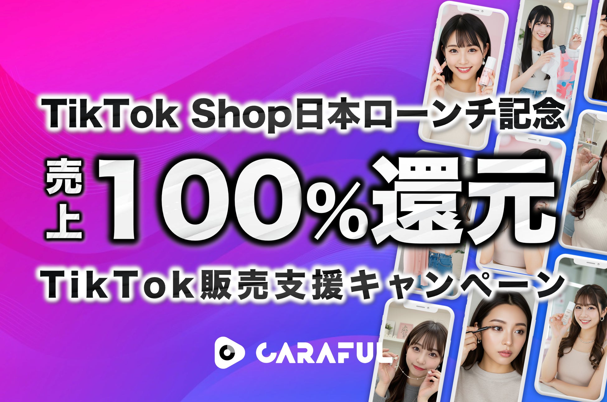 CARAFUL株式会社(本社:東京都渋谷区、代表取締役:松村淳平、以下CARAFUL)は、TikTok Shopのローンチを記念して売上100%還元TikTok販売支援サービスを開始します。