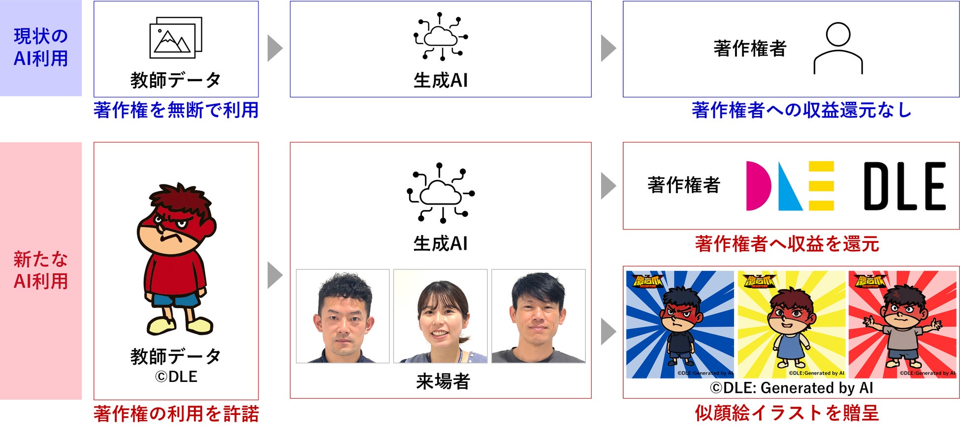 前田建設工業株式会社(本社:東京都千代田区、代表取締役社長:前田操治、以下「当社」)のICI未来共創センター(以下、「同センター」)と株式会社タジク(本社:東京都渋谷区、代表取締役社長:田中義弘、以下「タジク」)は、株式会社光邦(本社:東京都千代田区、代表取締役社長:前田剛宏、以下「光邦」)の技術支援と株式会社ディー・エル・イー(本社:東京都千代田区、代表取締役社長:星秀雄、以下「DLE」)の協力のもと、既存の人気IPホルダーや若手クリエイターの画像を教師データとした画像生成AIにおける著作権利用の対価を、教師データの利用許諾元へ支払うことで、画像生成AIの普及に向け重要となる権利許諾の在り方を提案する試行(以下、「本試行」)を開始しました。
