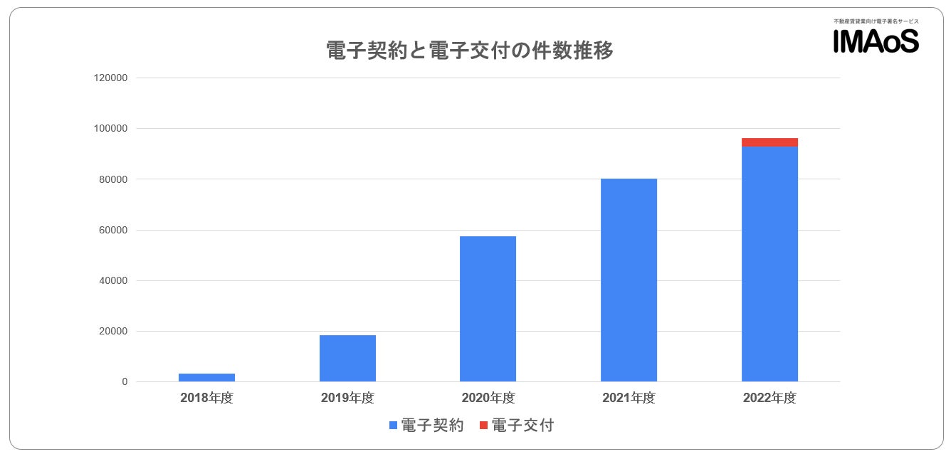 gooddaysホールディングス株式会社(東京都千代田区・代表取締役社長 小倉博)は、不動産賃貸業向け電子署名サービスIMAoS(イマオス)における2022年度の電子契約の締結件数を集計しましたのでご報告します。また、2022年5月の改正宅地建物取引業法等の施行で解禁された重要事項説明書等の電子交付の実施件数も初めてご報告します。
