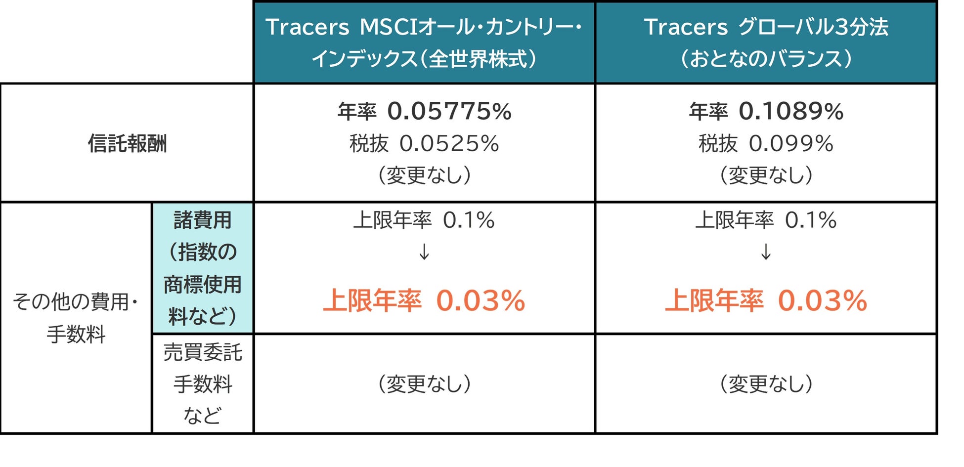 【日興アセットマネジメント】「Tracers MSCIオール・カントリー・インデックス(全世界株式)」「Tracers グローバル3分法(おとなのバランス)」、「諸費用」の上限年率を引き下げ