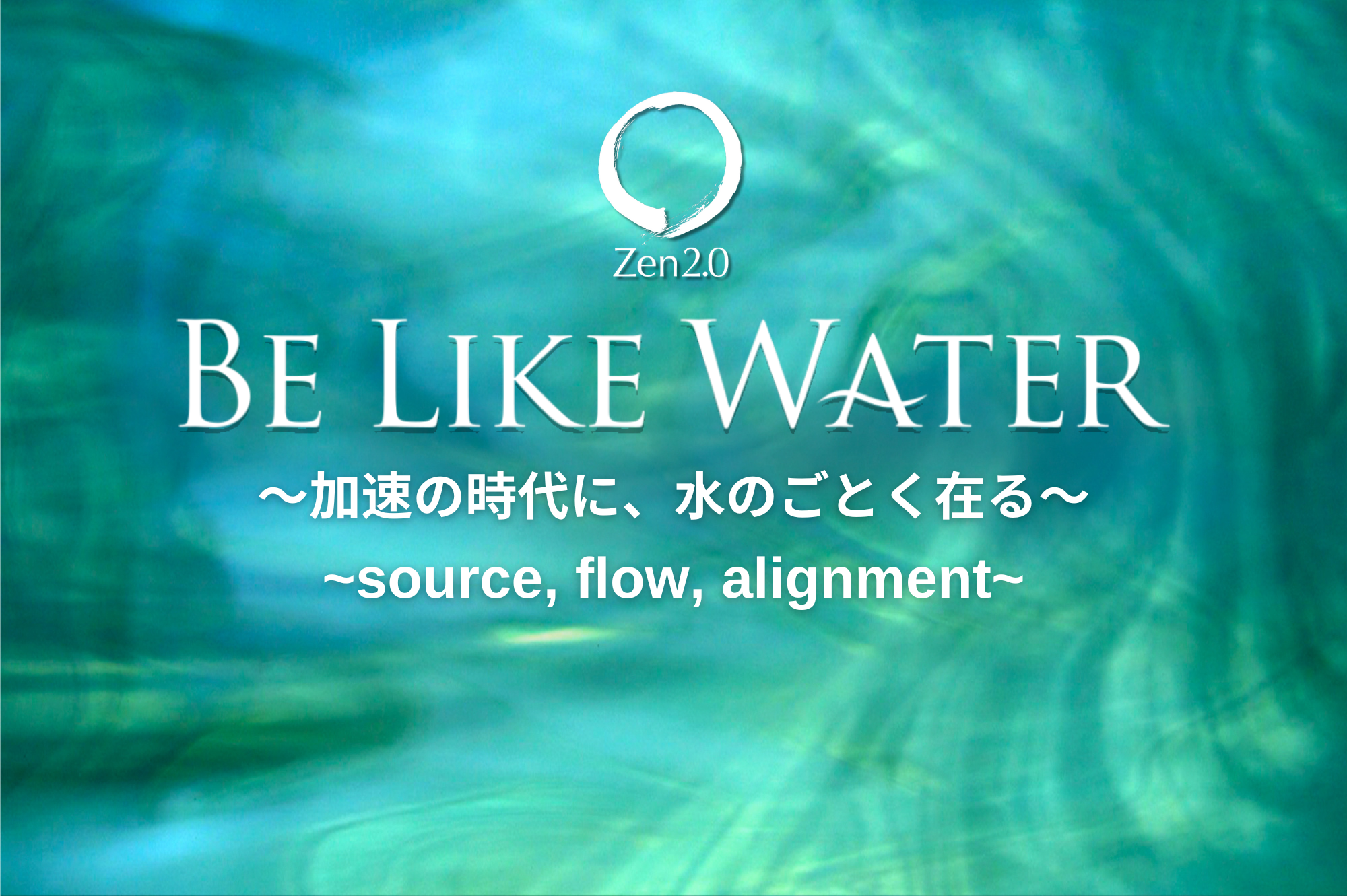 そのような環境下だからこそ、私たち一人ひとりがしっかり本来の自分・大切なコアの価値観(Source)に繋がり、そして水源から湧き出る泉が川となって流れるが如く、そこからのエネルギーで自然な流れ(Flow)が創り出され、そして、私たちのコミュニティ・社会・地球の中でそれぞれのパーパスに繋がったアクションに繋がり(Alignment)、広い海へと循環・浸透していく。 今年のZen2.0ではその想いを「BE LIKE WATER 〜加速の時代に、水のごとく在る〜 Source, Flow, Alignment」という言葉に込めました。