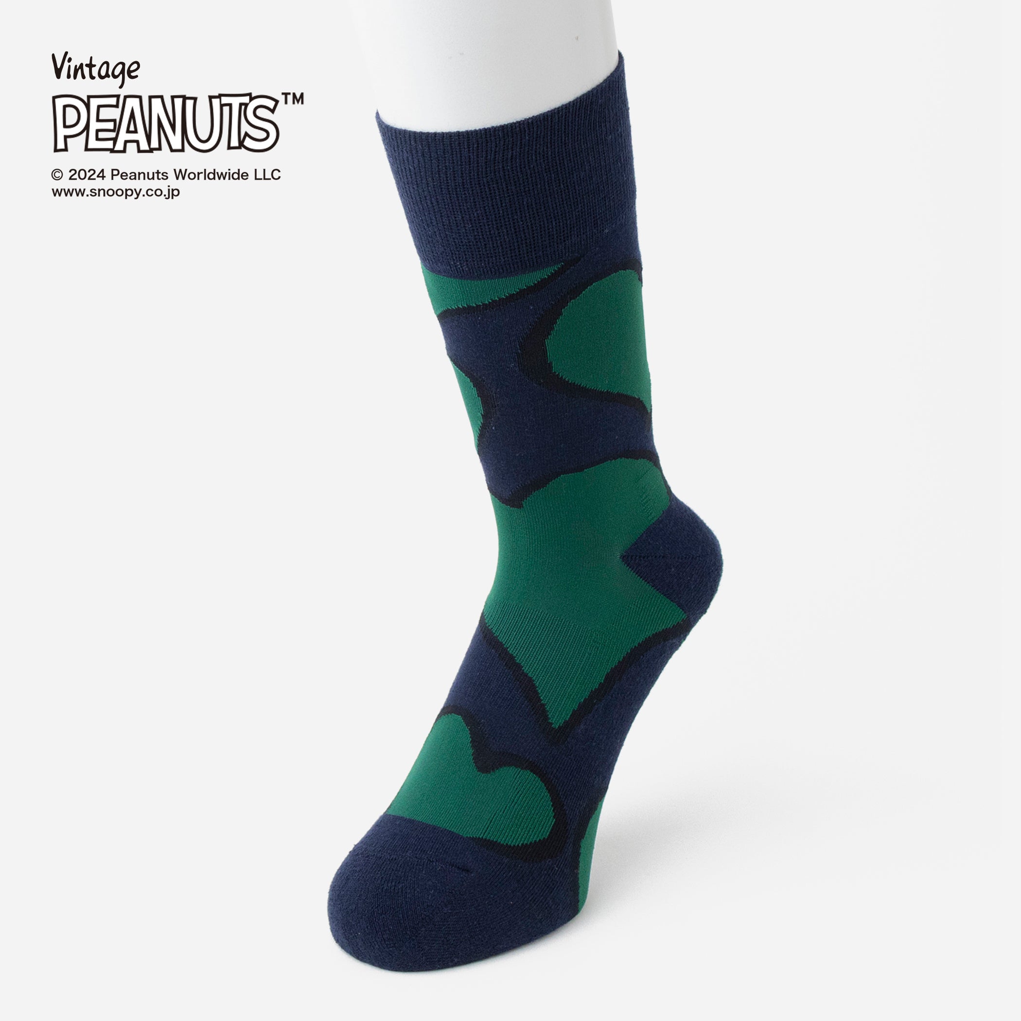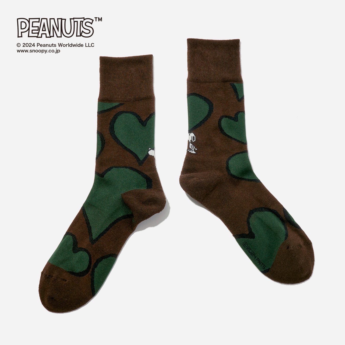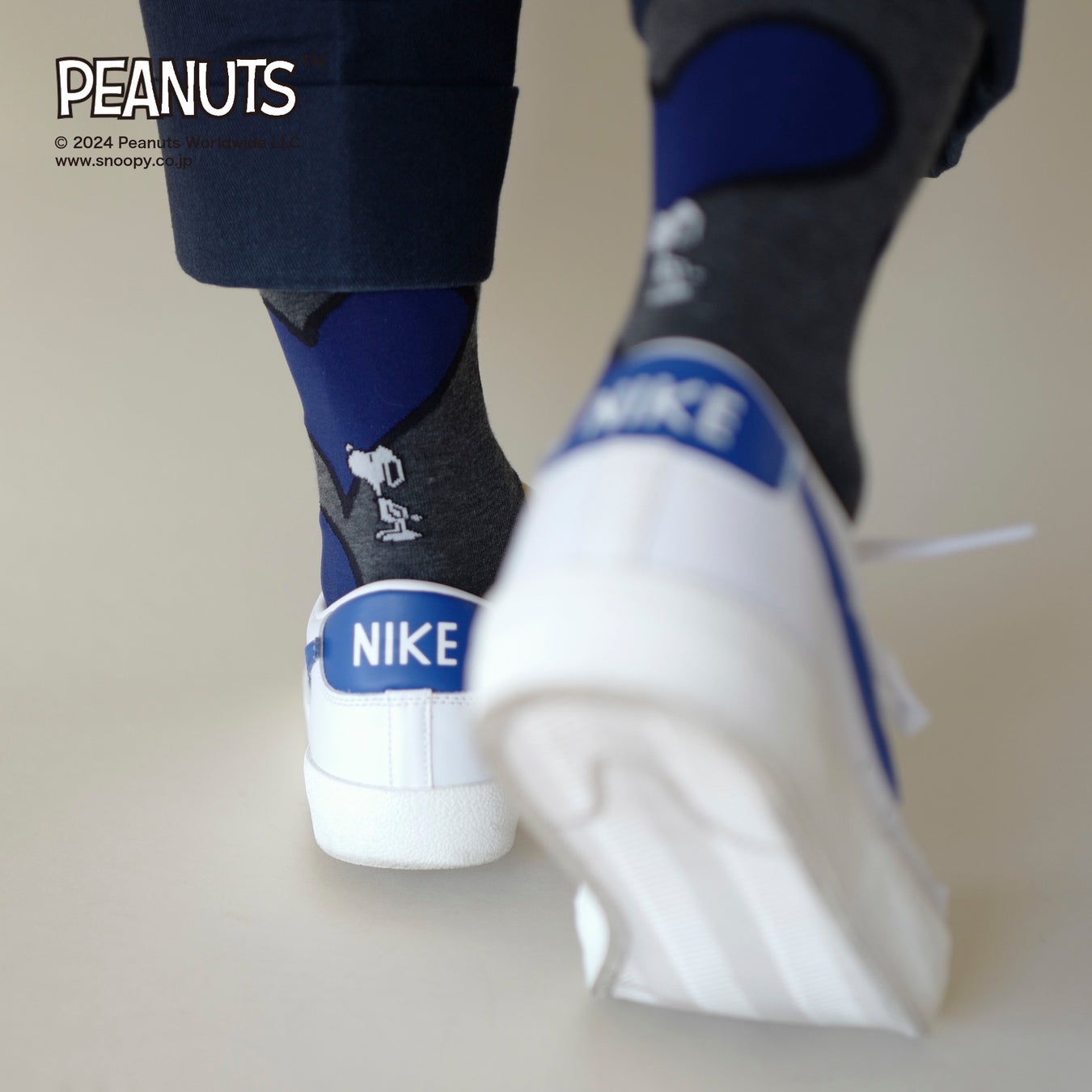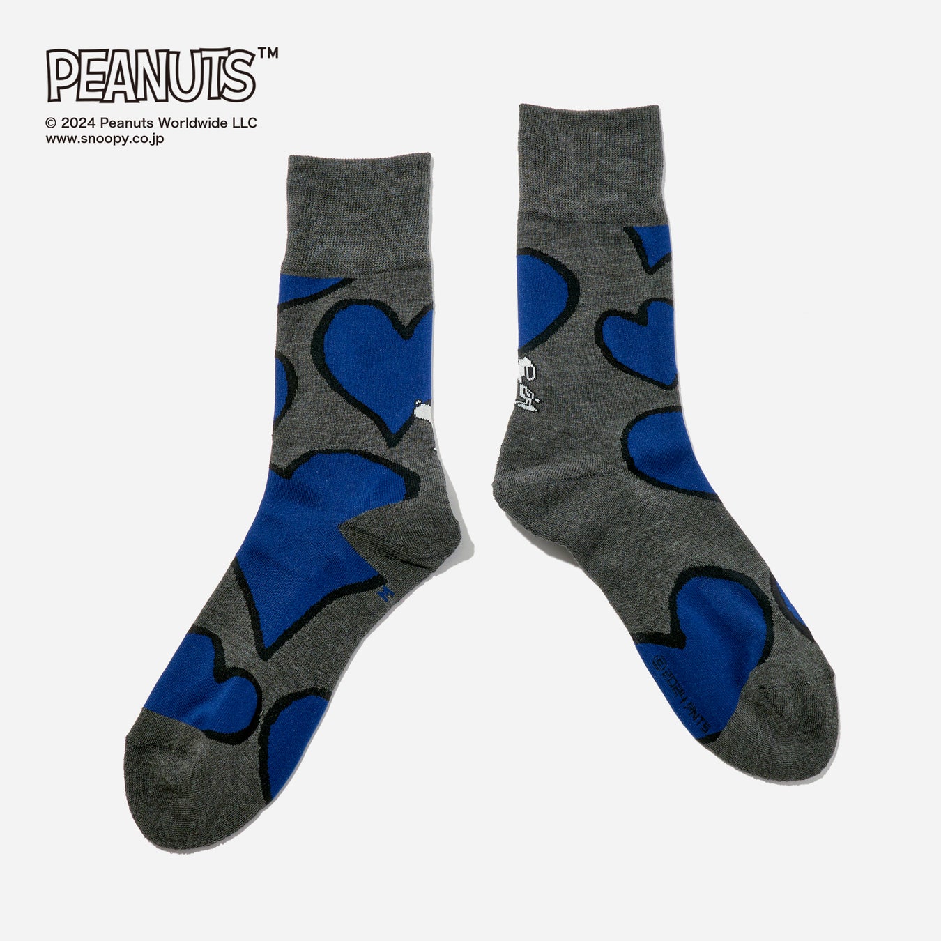 履いた時にあえてハートだと分かりにくい大きさにすることで、男女問わず履きやすいソックスをデザインしました。パンツの裾から覗くスヌーピーも程よい大きさで、男性へのギフトにもおすすめです。