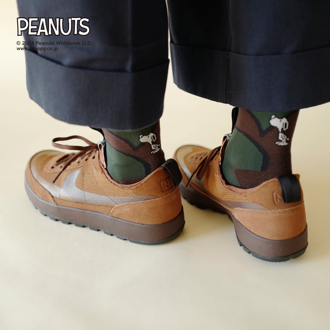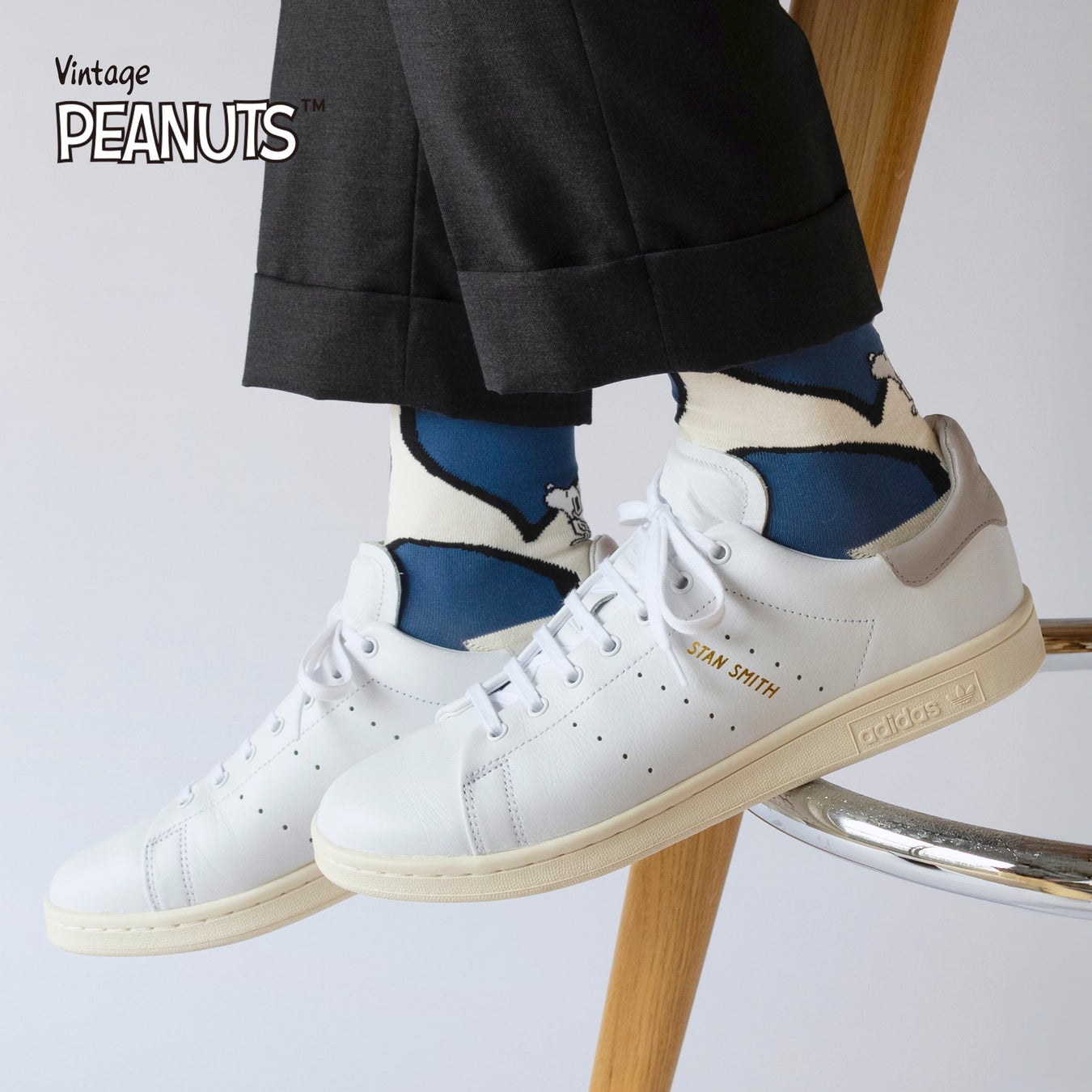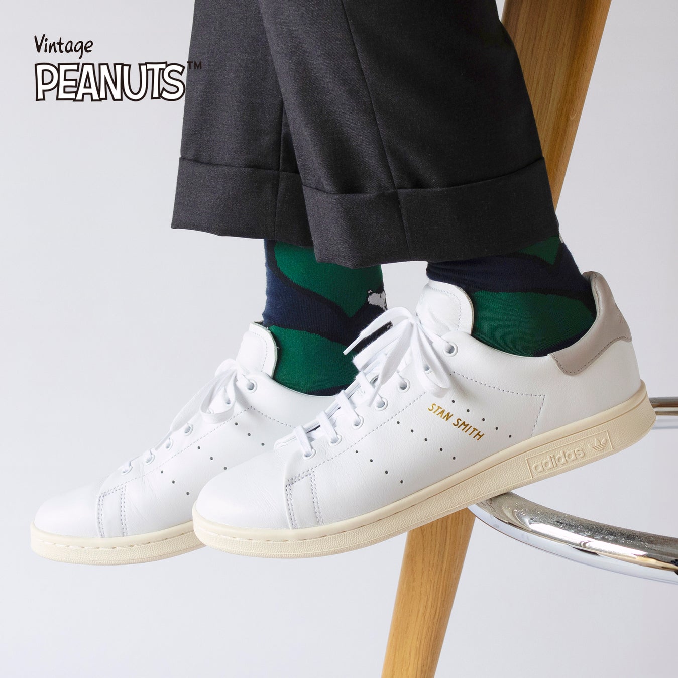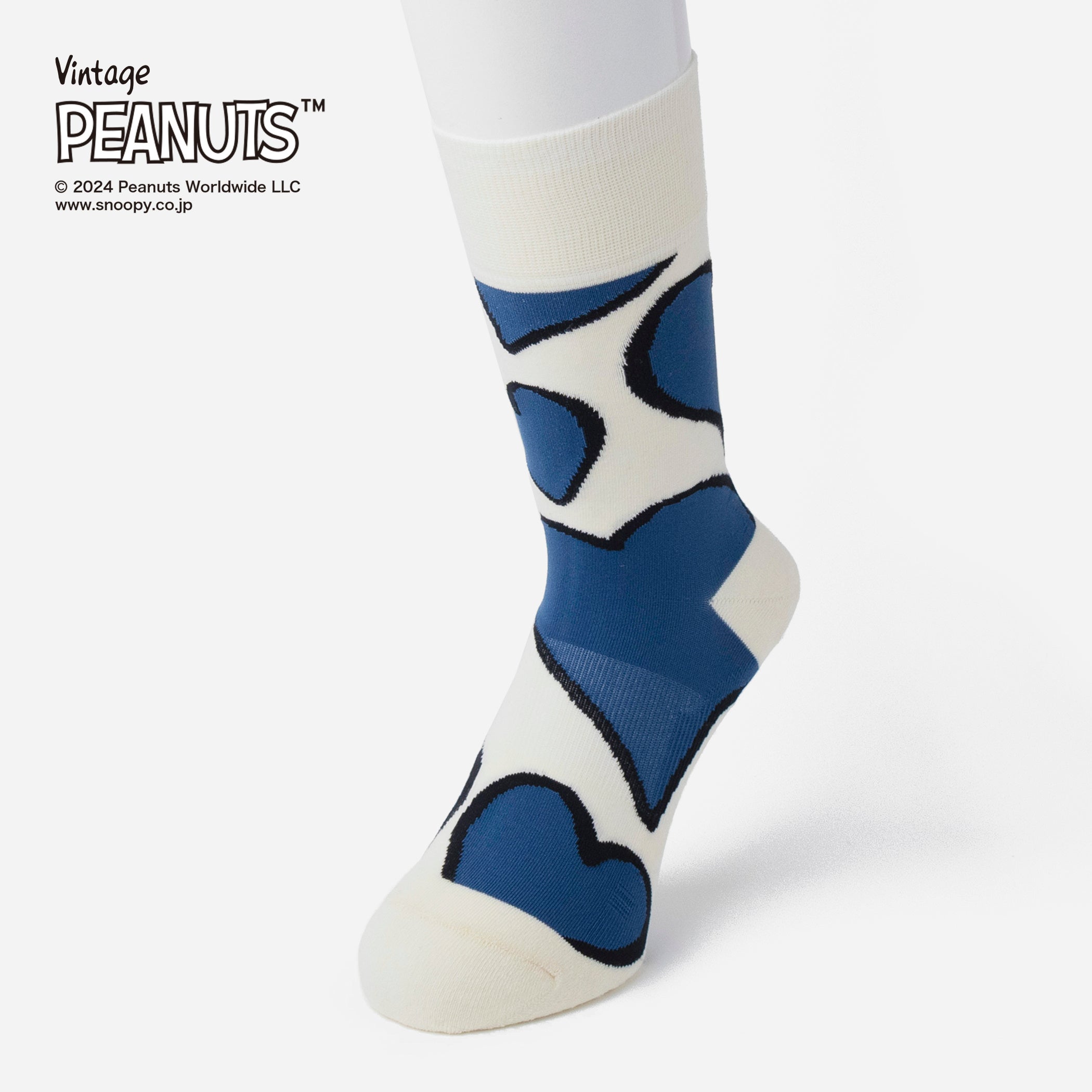 履いた時にあえてハートだと分かりにくい大きさにすることで、男女問わず履きやすいソックスをデザインしました。パンツの裾から覗くスヌーピーも程よい大きさで、男性へのギフトにもおすすめです。