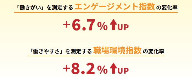 導入校の平均値では、「働きがい」を測るエンゲージメント指数:+6.7%向上、「働きやすさ」を測る職場環境指数:+8.2%向上が確認されています(2024〜2025年度の導入校平均)。これらの成果は、大掛かりな制度改正によらず、日常的な意識と行動の変化によって達成されたものです。