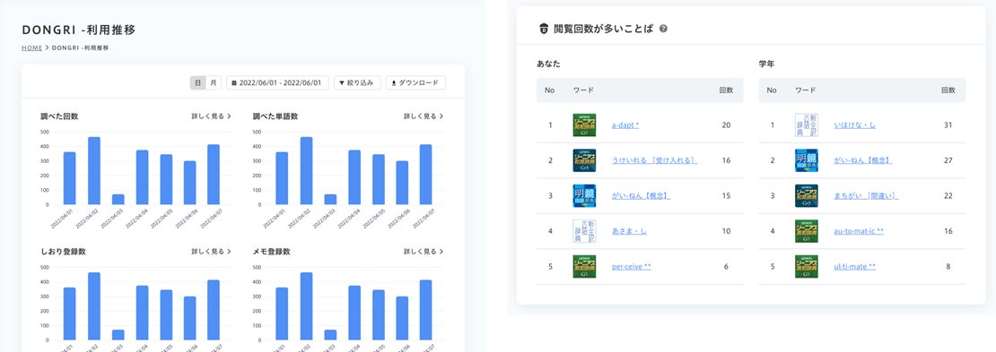 辞書の利用状況が分かる「ダッシュボード機能」を、DONGRIの一括採用校向けに令和5年度から提供開始
