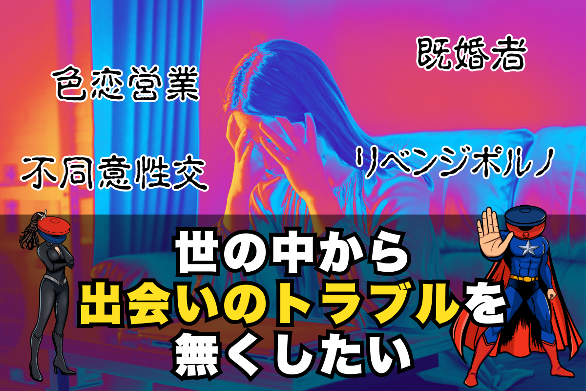 カスタネットは出会いの現場から「色恋営業」や「美人局」「不同意性交」といったトラブルを減らし、未婚化・晩婚化の状況を改善するための、全独身者に使っていただきたいツールです。