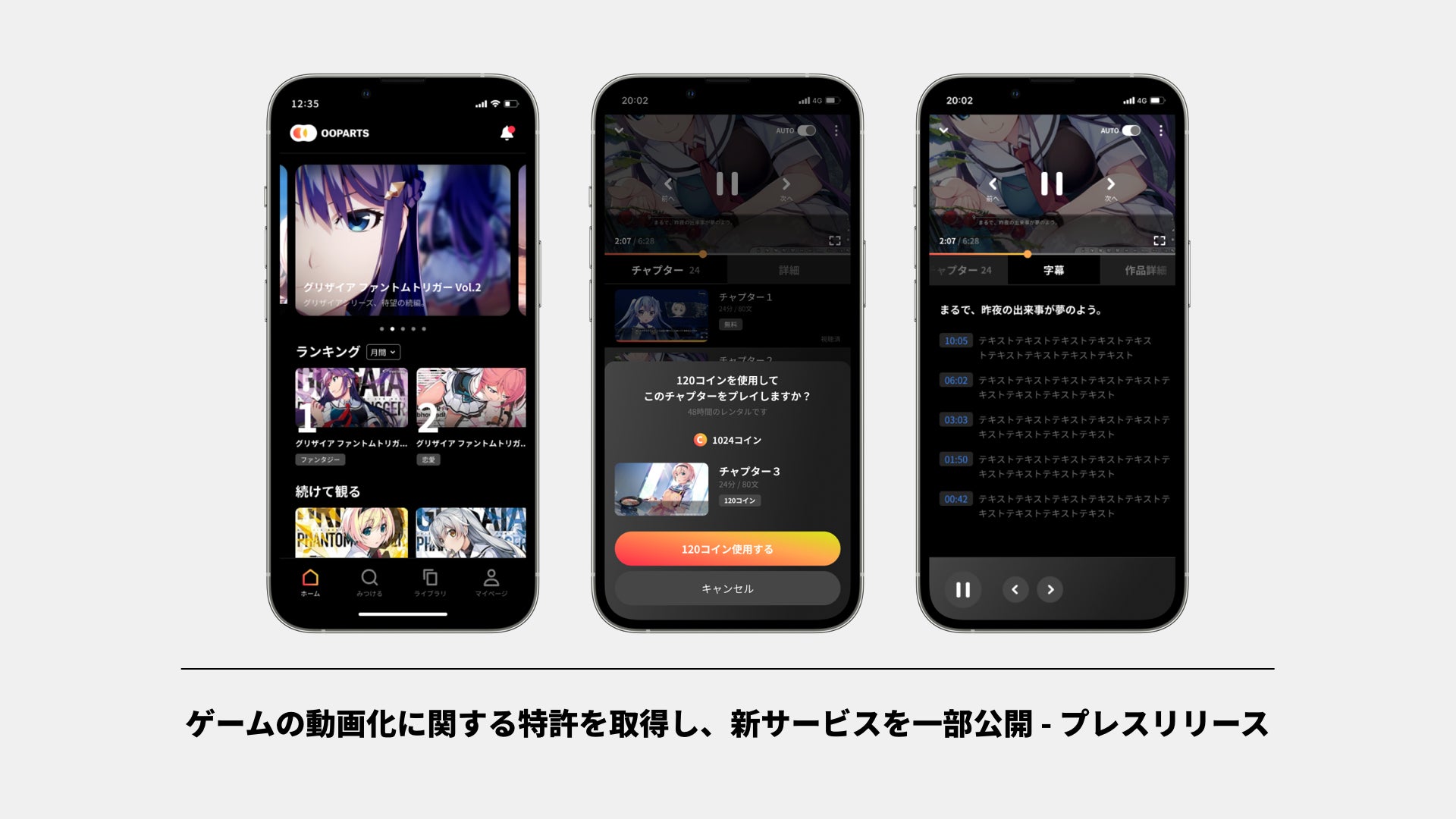ビジュアルノベル(美少女ゲーム)をあらゆるデバイスでプレイできる、クラウドゲーミングプラットフォーム「OOParts(カタカナ表記:オーパーツ)」を支える技術の一部に関して新たな特許を取得し、この特許を活用した新サービスを開発中であることをお知らせします。