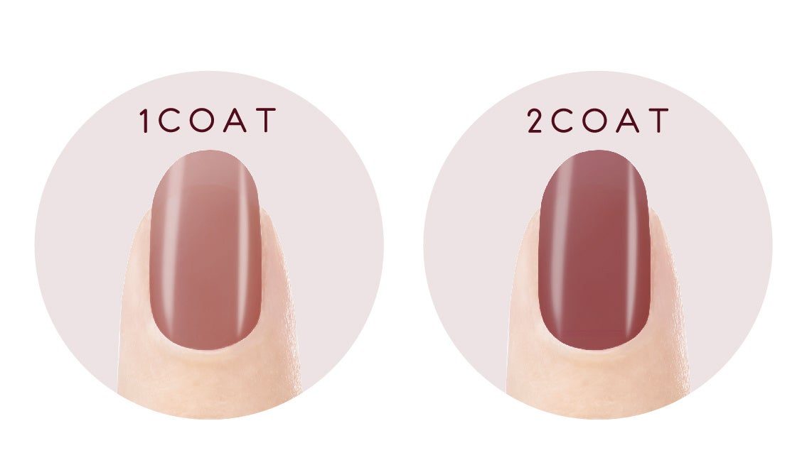 1度塗りでほんのり透け感、2度塗りでしっかり発色。重ね方次第でお好きな発色が楽しめます。