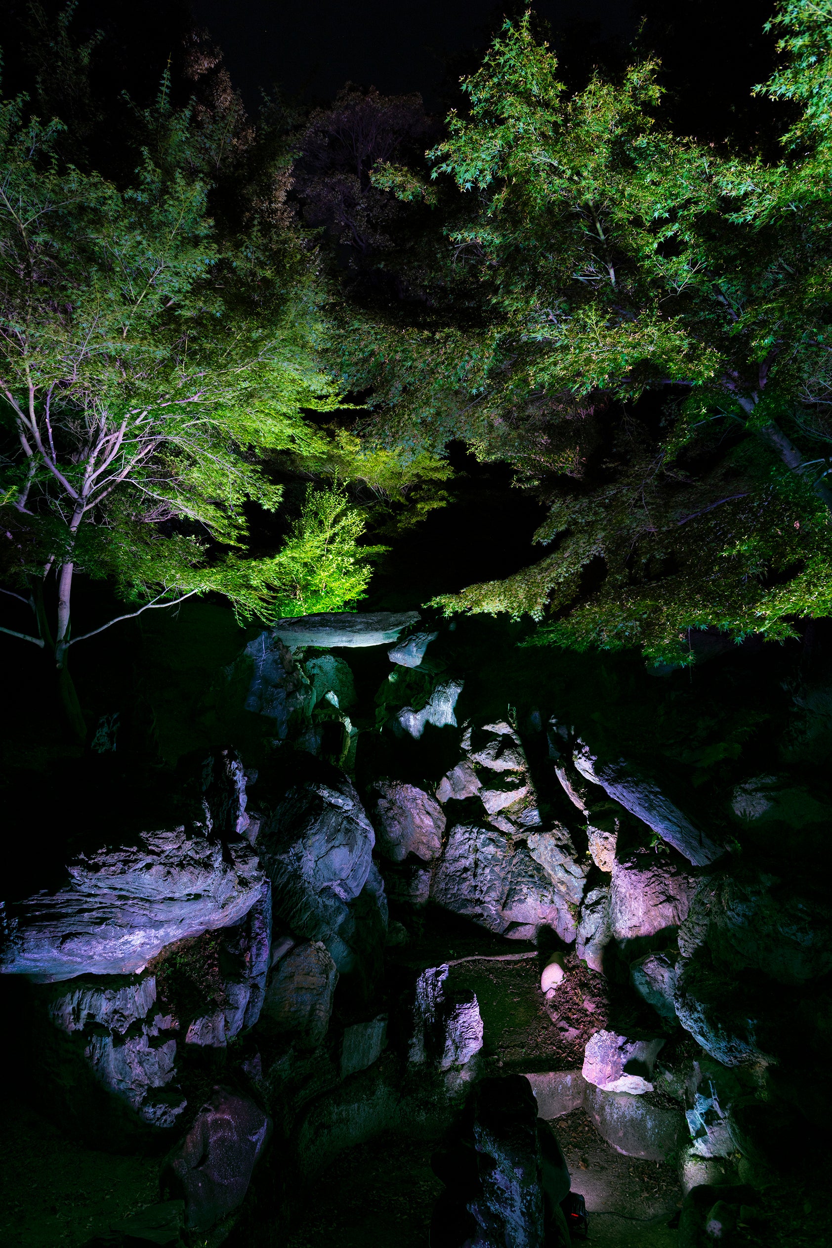 青々と広がる樹冠の傘、鯉や水辺の植物が生きた池の水深、何代もの藩主を楽しませた滝組の雄大さ、闇夜に浮かぶ築山の影。人の手により造られ守られてきた二の丸庭園を、ライトアップにて浮かび上がらせたいと思います。今回だけの特別な夜の庭園を楽しんでもらえたら幸いです。