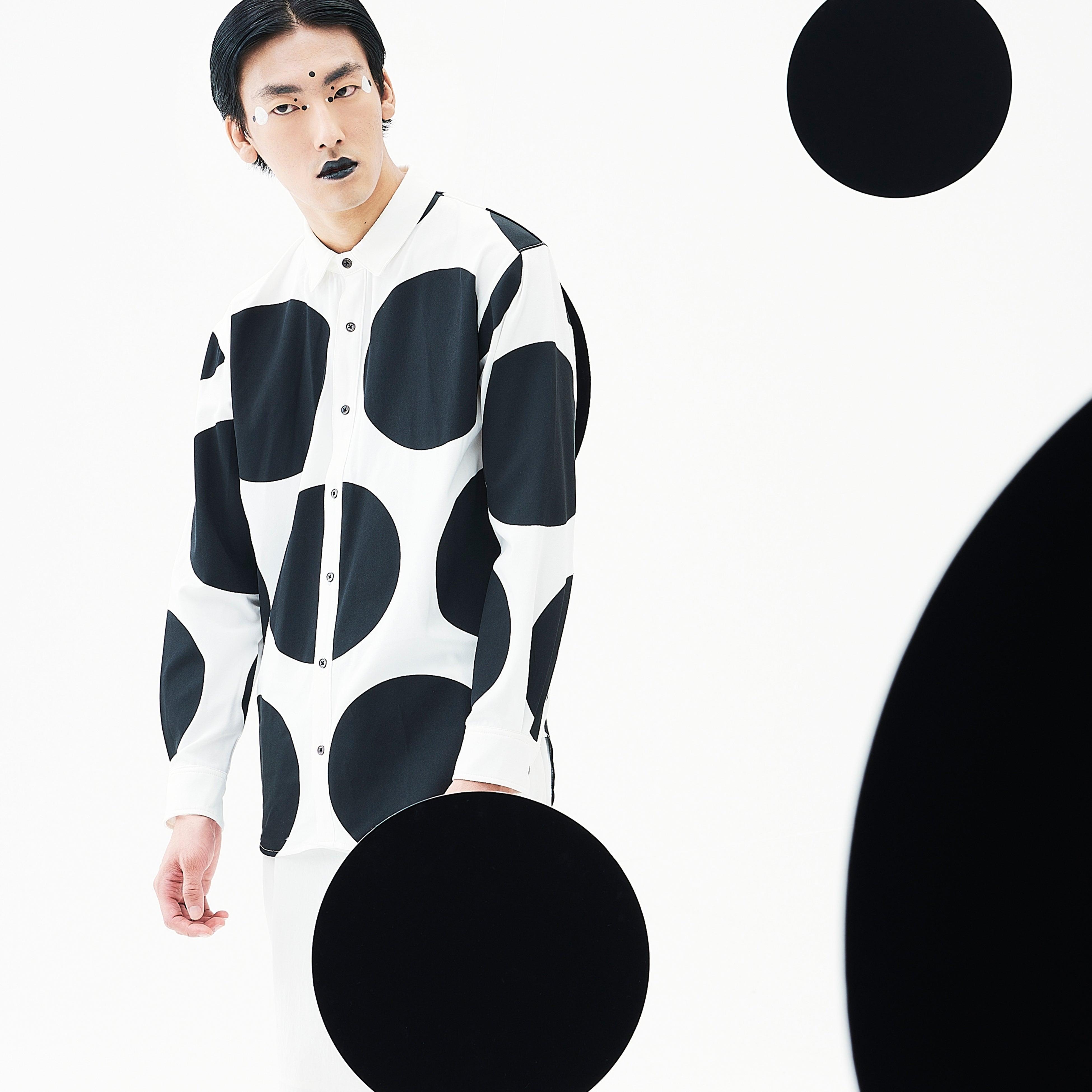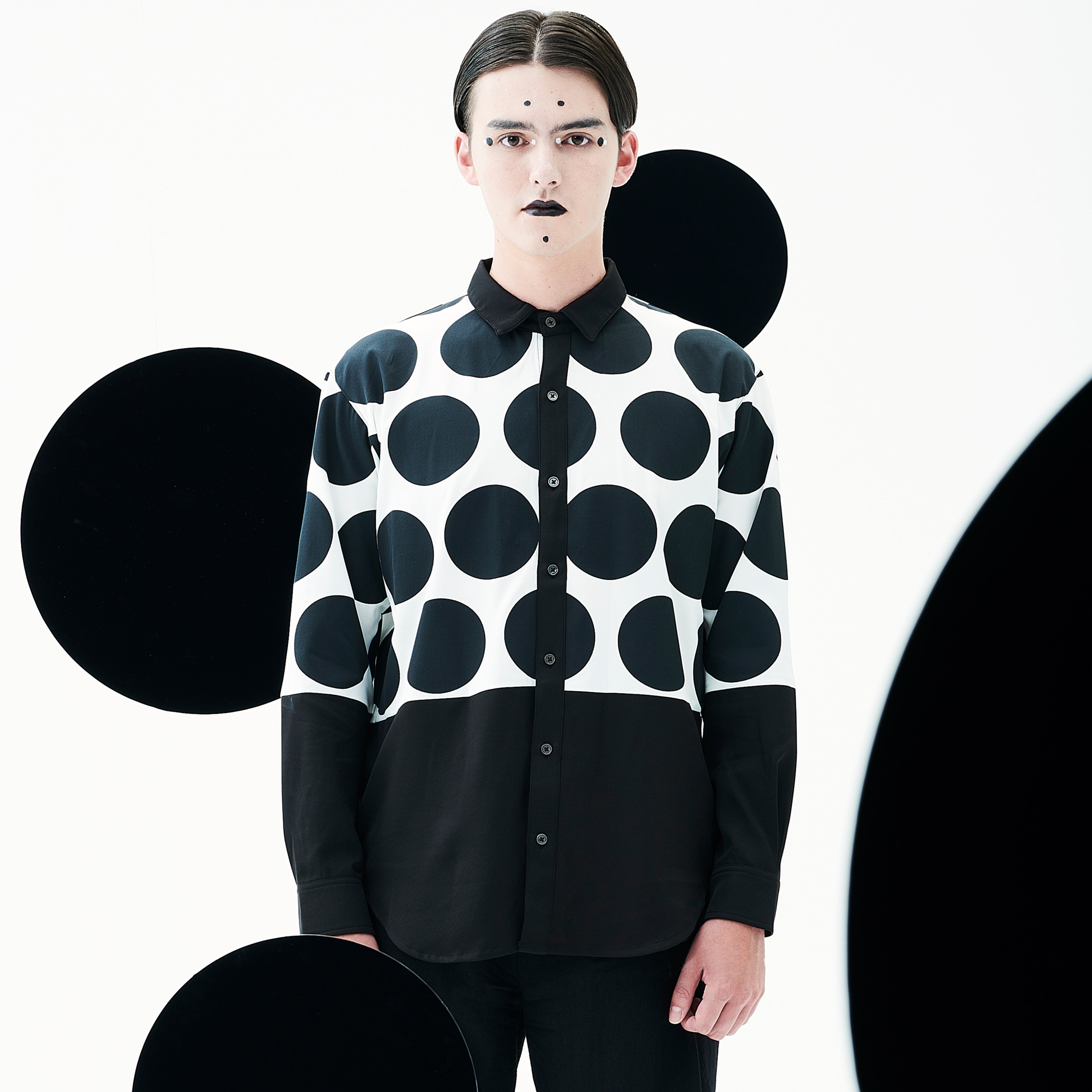 ドットの直径から服を選ぶ「φ(ファイ)」シリーズの長袖シャツ。